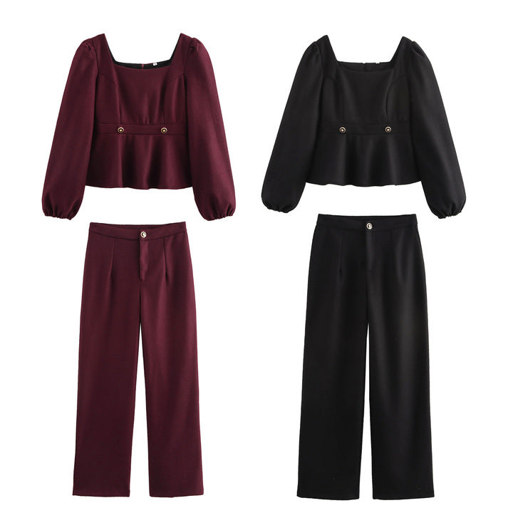 Elevate your wardrobe with this expertly tailored Square Collar Long Sleeve Blouse & Pants Set. Featuring a distinctive square collar and long sleeves, the blouse offers a refined silhouette that pairs seamlessly with the matching pants for a cohesive, polished look. Crafted for both comfort and style, this set is ideal for professional settings or sophisticated casual occasions, ensuring you present a confident and modern appearance.