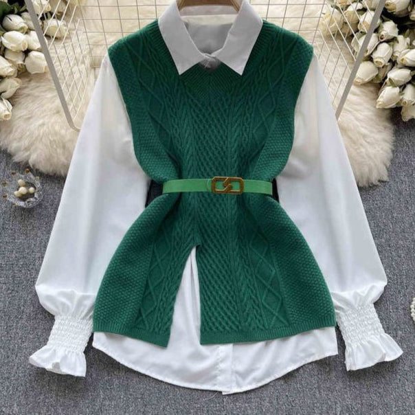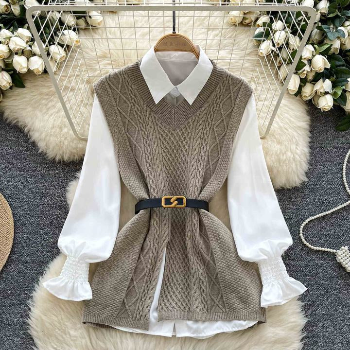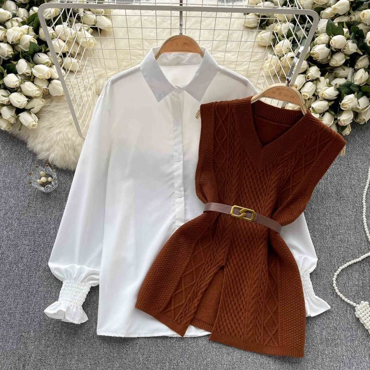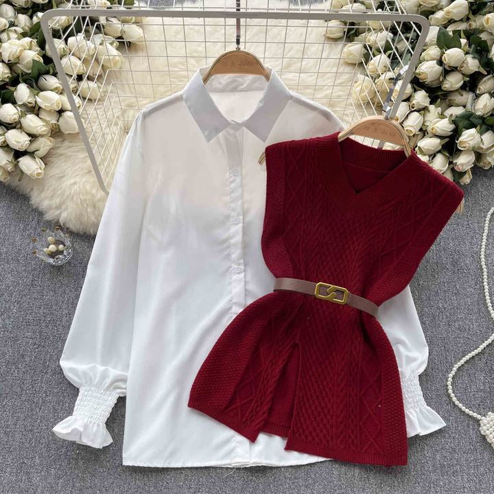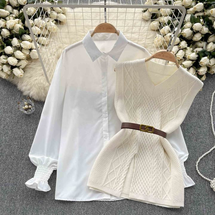 The perfect addition to any wardrobe, our White Shirt with Knitted Vest offers a timeless and feminine fit. The knitted...