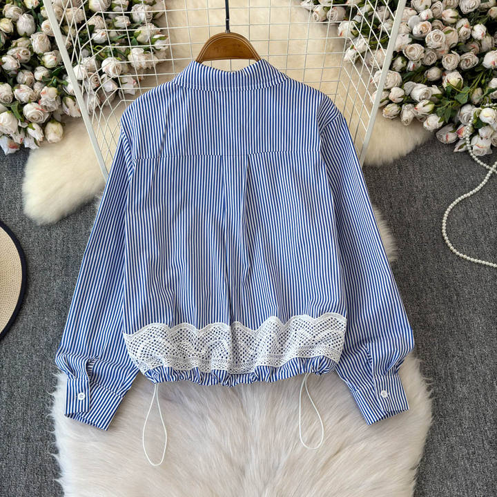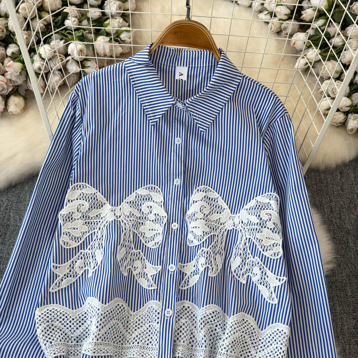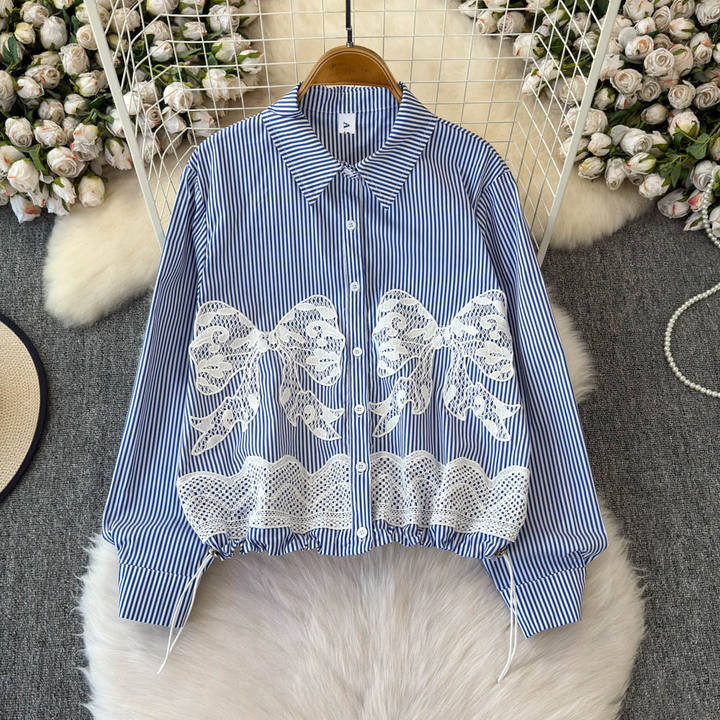 Lace Bow Stripe Shirt – Women's Casual Top