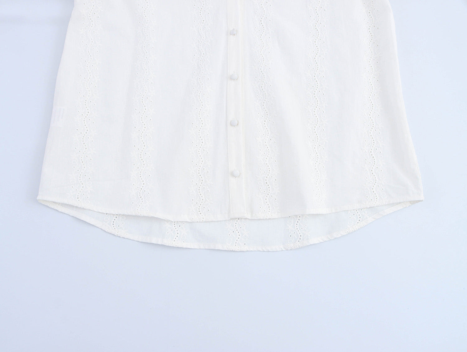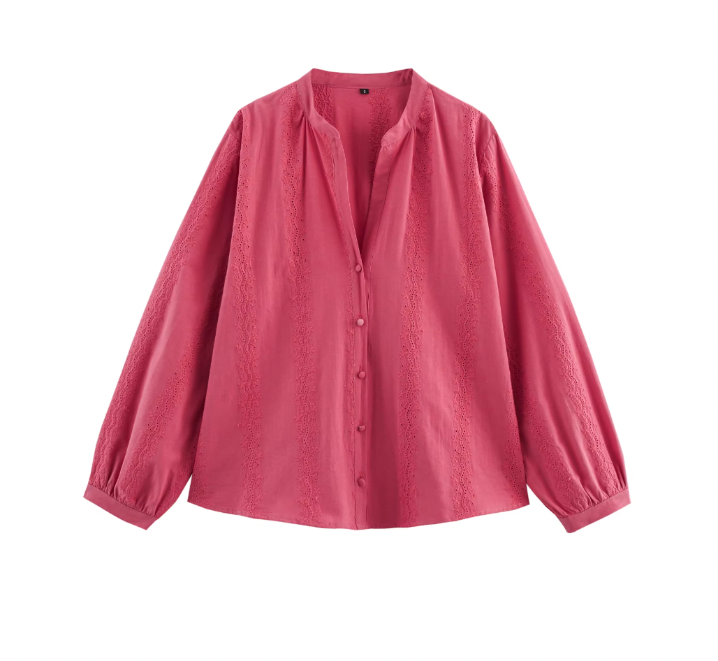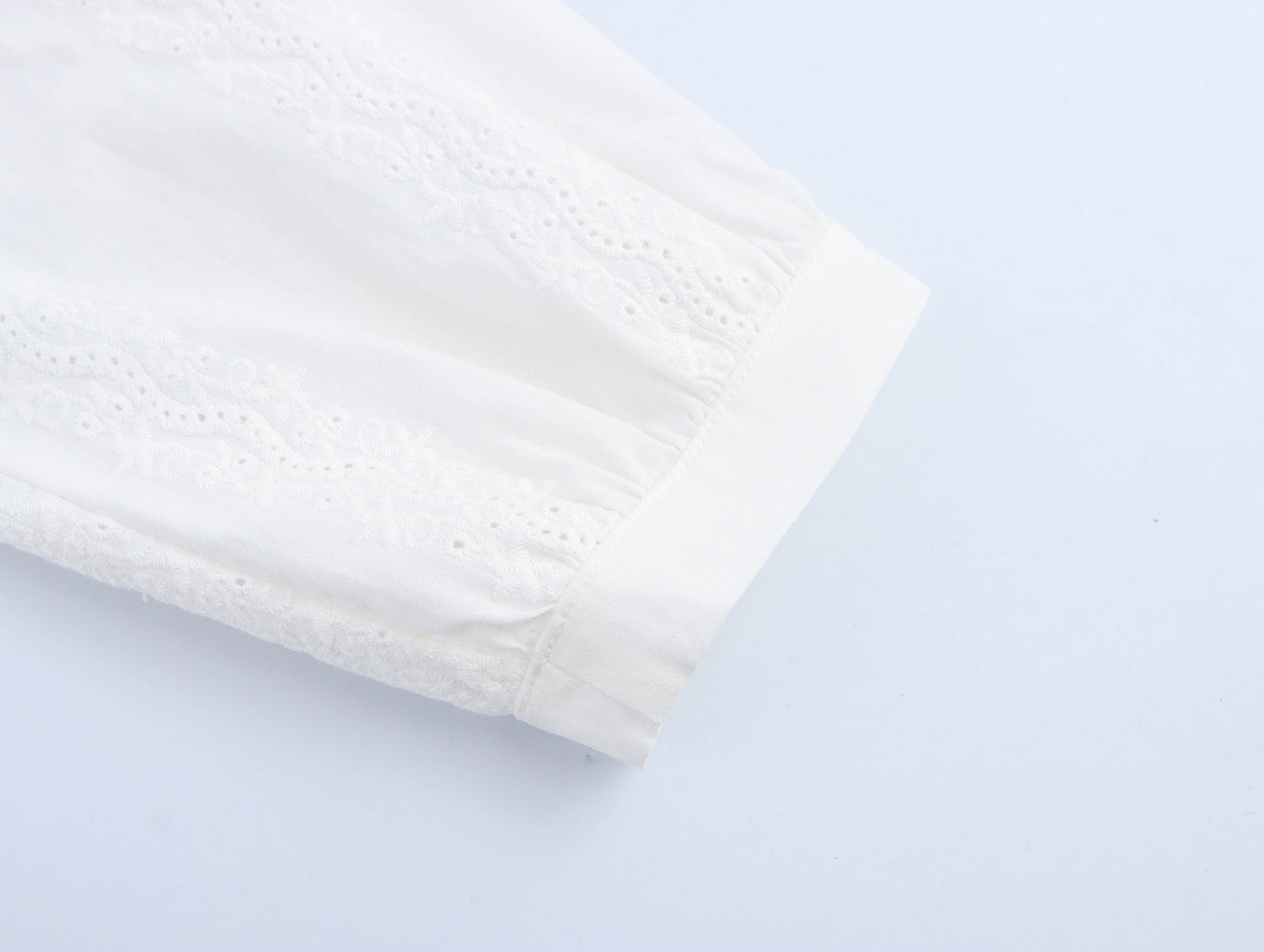 This expertly crafted long sleeve shirt features delicate embroidery and a flattering V-neck design. The button-up front adds a classic...