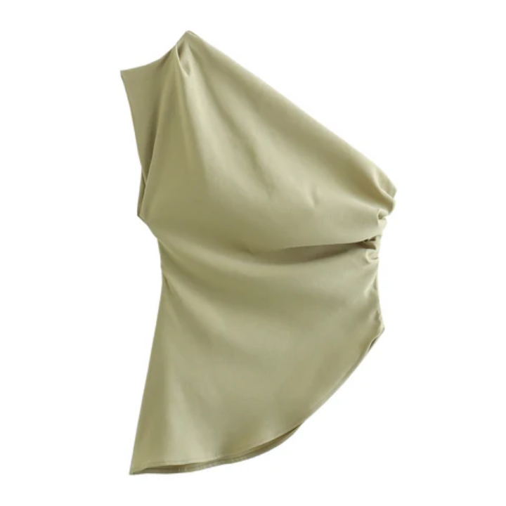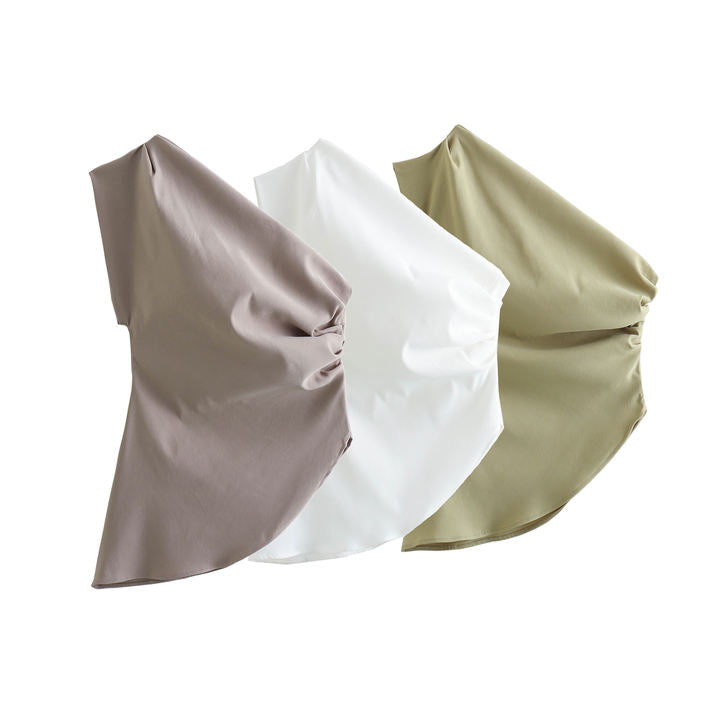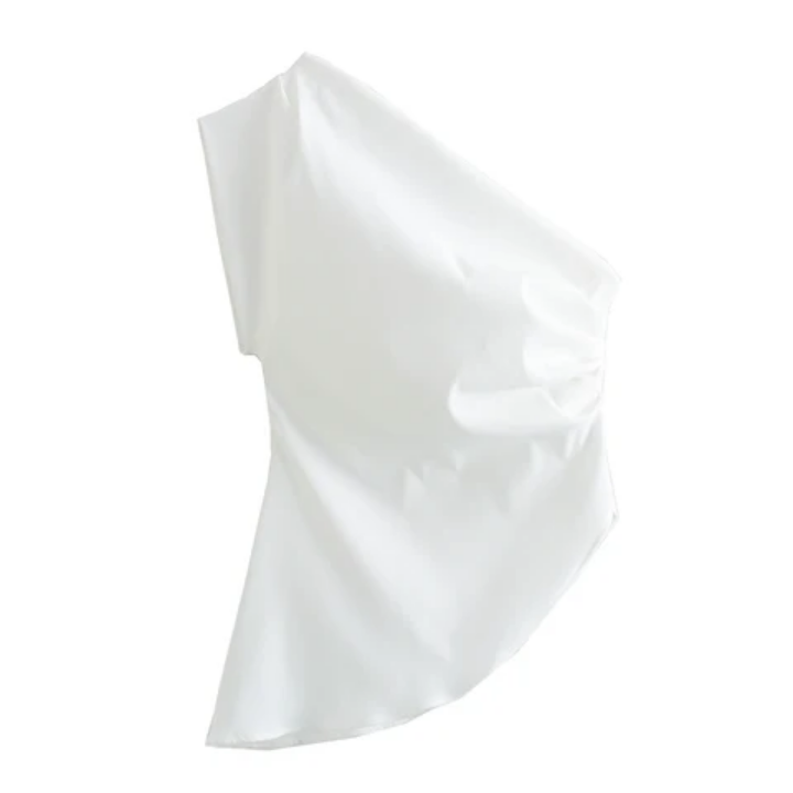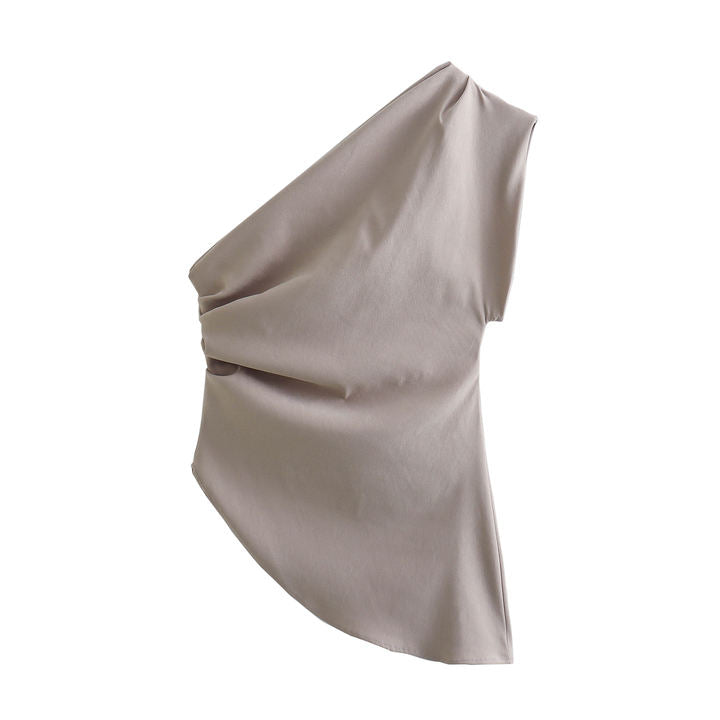 This meticulously crafted one shoulder pleated tank top exemplifies asymmetrical design excellence. The strategic pleating creates dimensional texture while maintaining structural integrity across the silhouette. The single shoulder construction provides architectural interest with calculated support, allowing unrestricted movement. Engineered with precise proportions, this sophisticated piece elevates casual and formal ensembles through its technical execution and refined aesthetic sensibility.