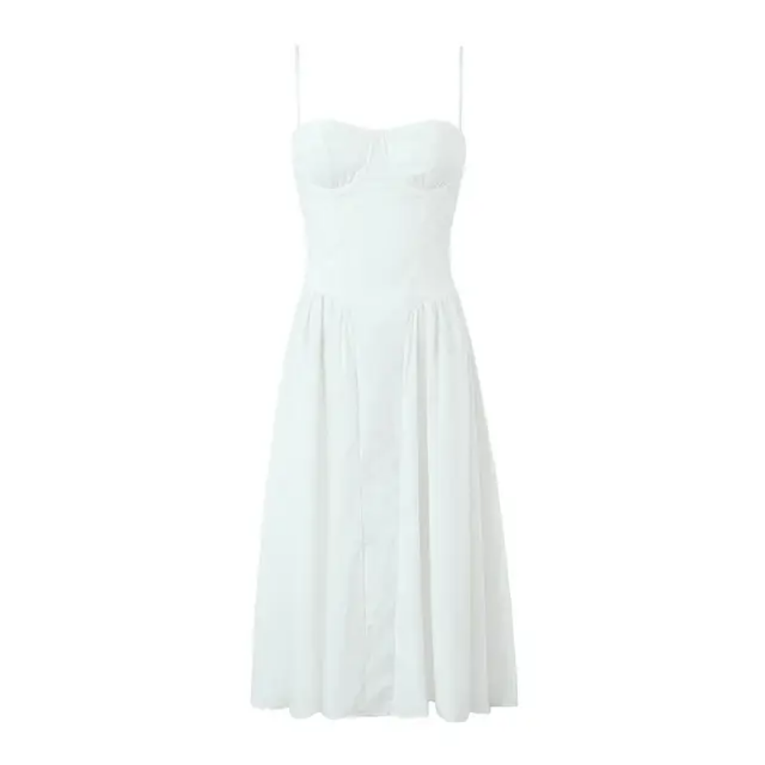 This pleated spaghetti strap midi dress is a stylish and versatile addition to any wardrobe. The pleats provide a flattering...