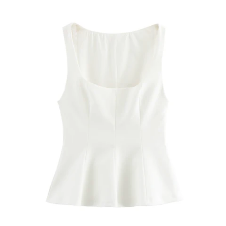 This precision-engineered square neck sleeveless blouse demonstrates superior pattern construction with geometrically optimized neckline architecture. The calculated square configuration frames the décolletage with architectural precision while providing structural stability. Advanced armhole engineering ensures unrestricted mobility without compromising silhouette integrity. Constructed with technical fabric that maintains dimensional consistency, this versatile piece offers sophisticated aesthetic appeal with performance-driven design elements.