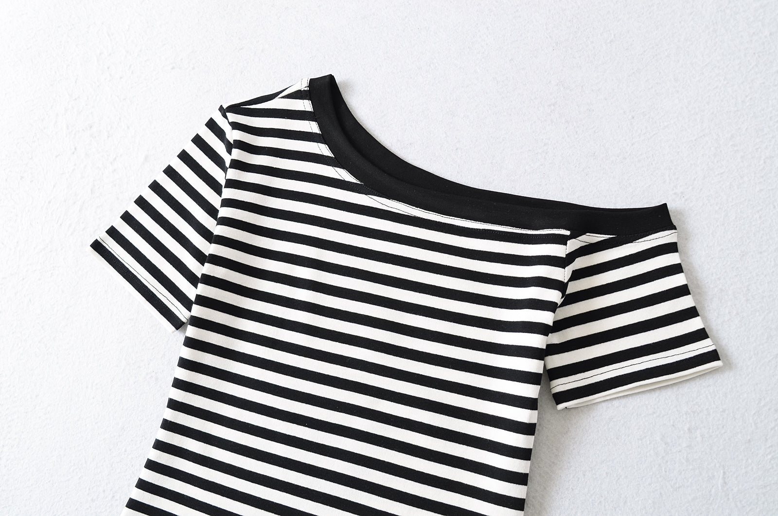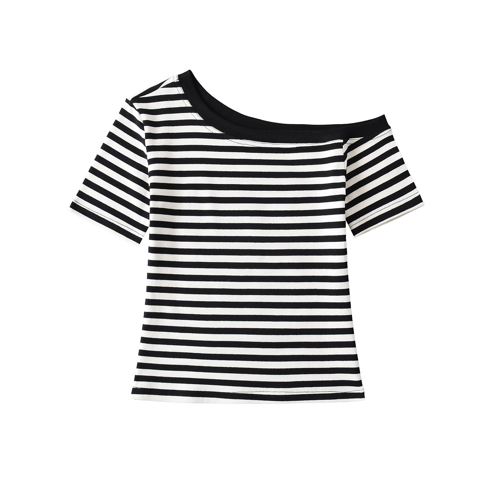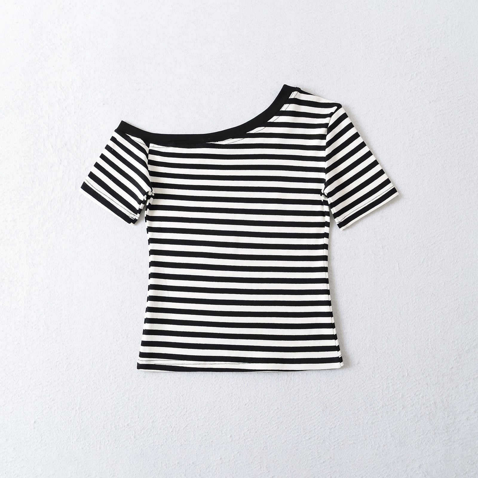 Asymmetrical Design Short Sleeve Striped T-Shirt