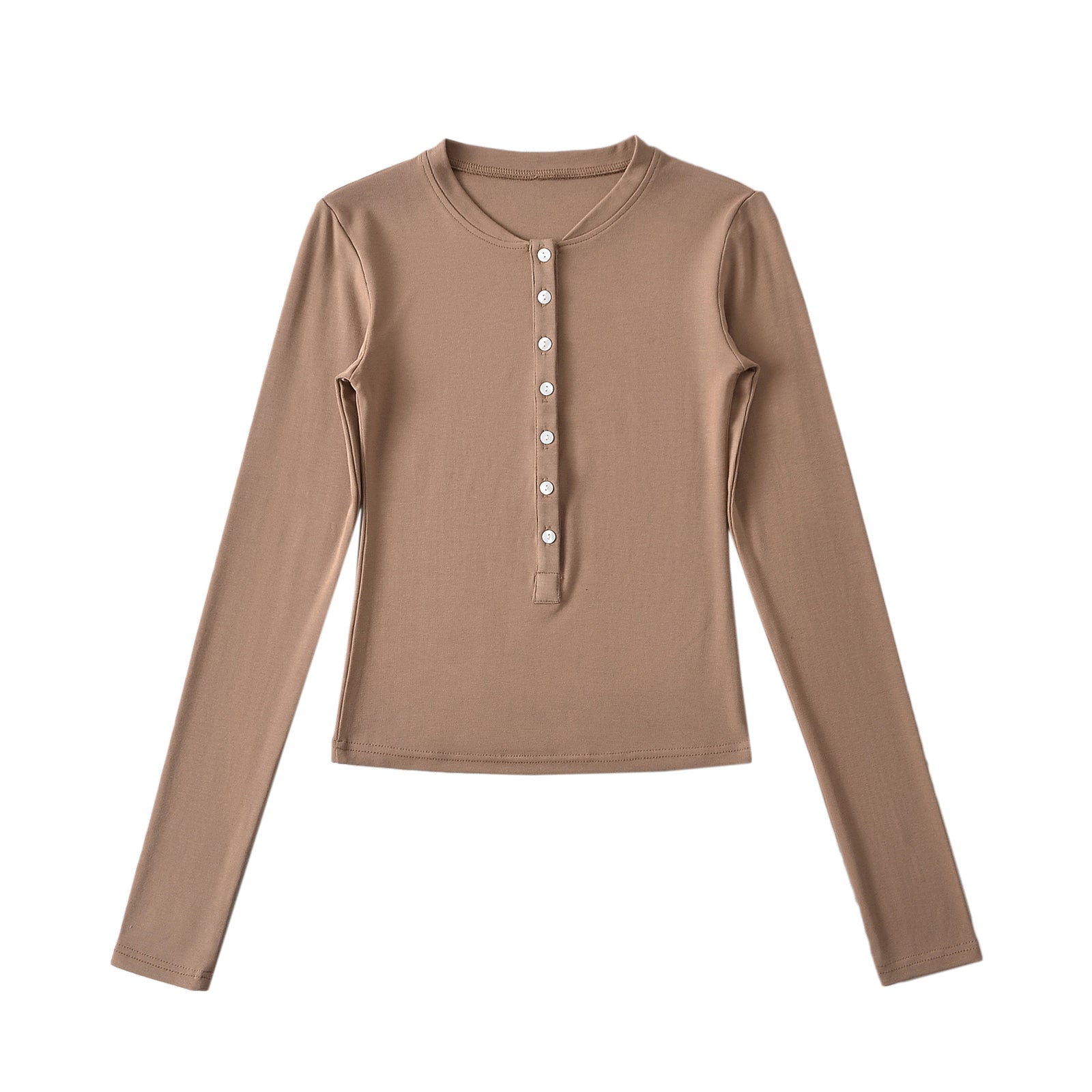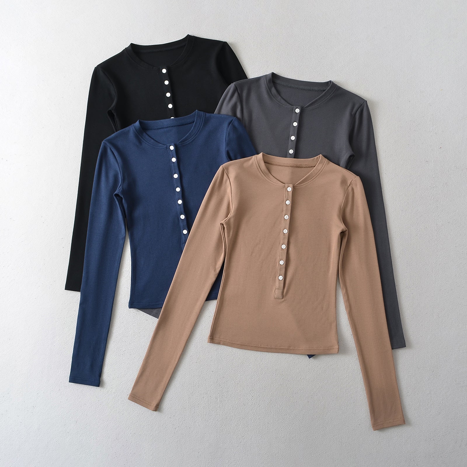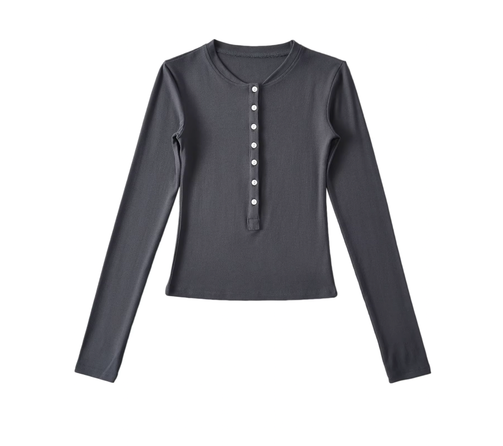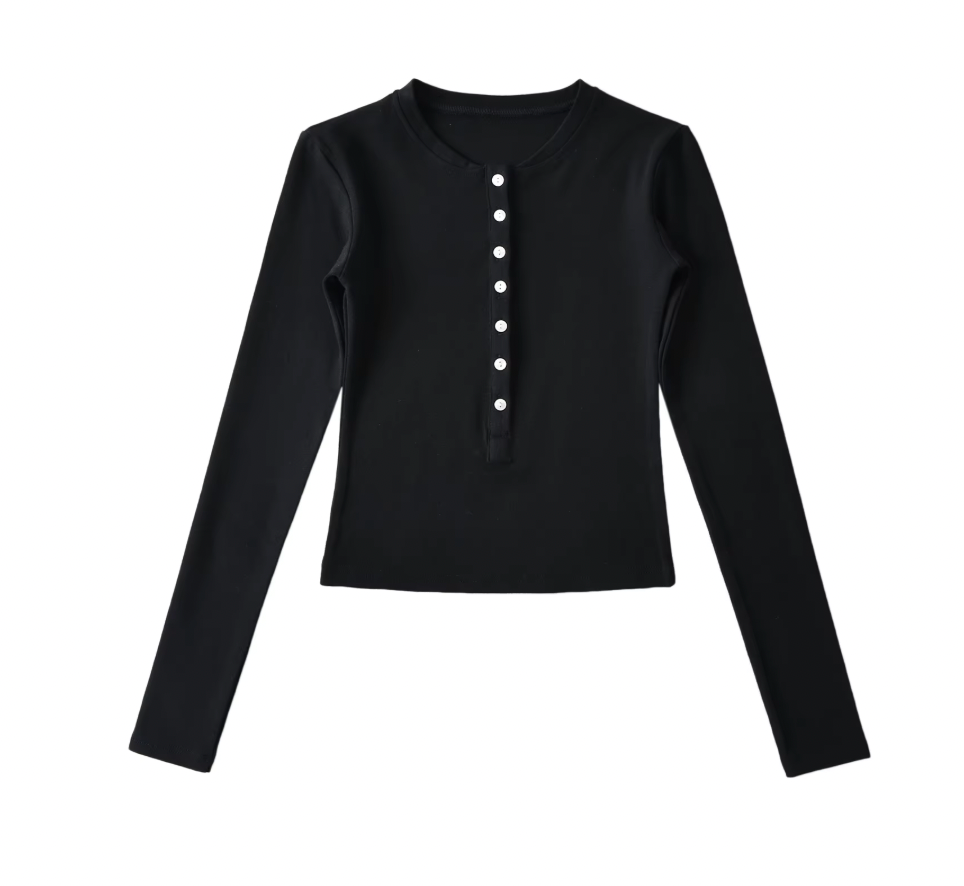 This long sleeve button-up T-shirt combines the casual comfort of a tee with the refined detail of a button-up design. Crafted for versatility, it offers a polished look suitable for layering or wearing alone. The long sleeves provide added warmth and coverage, making it ideal for transitional weather. Its tailored fit ensures a sleek silhouette, while the button-up front adds a touch of sophistication to your everyday wardrobe. Perfect for both professional and casual settings, this piece balances style and practicality with expert craftsmanship.