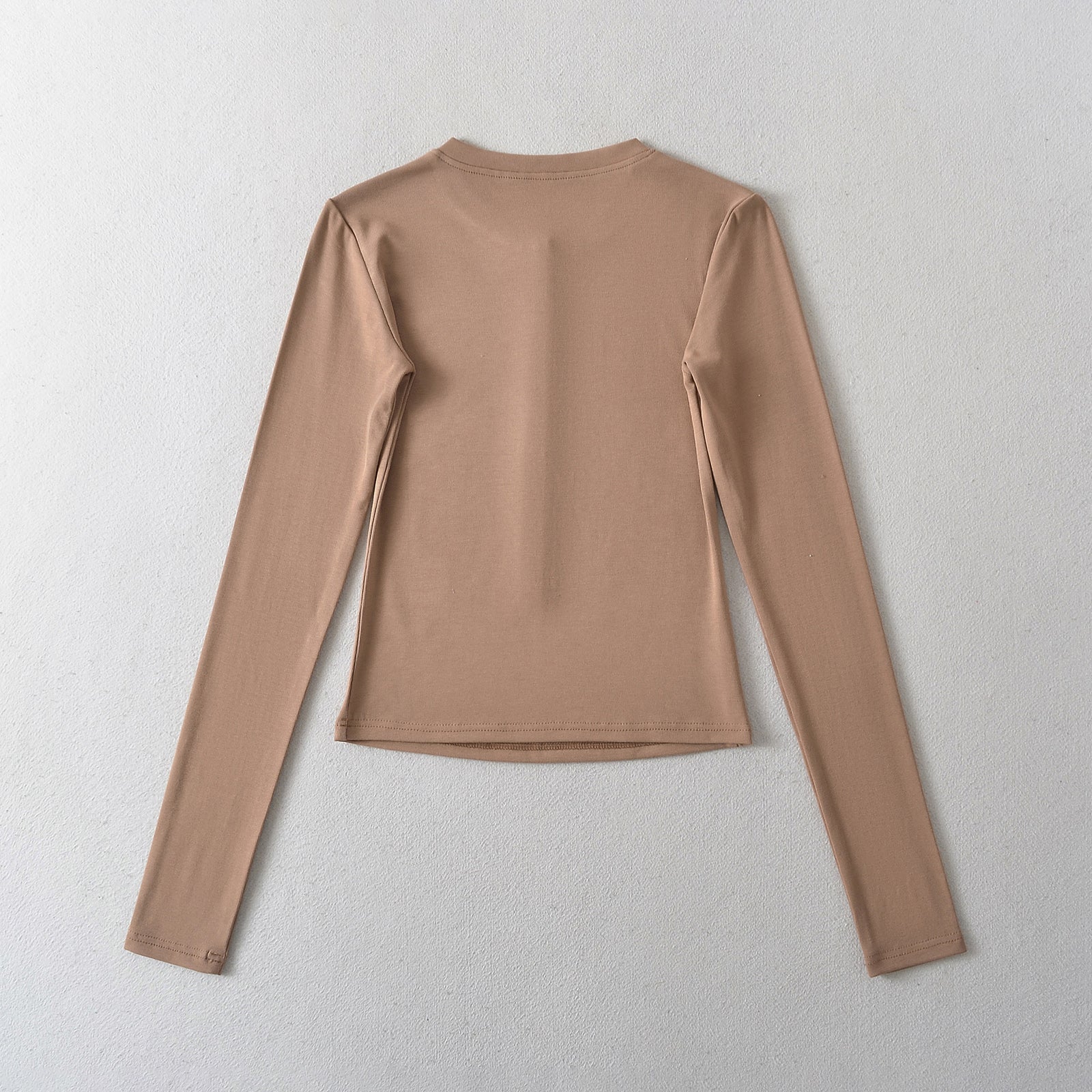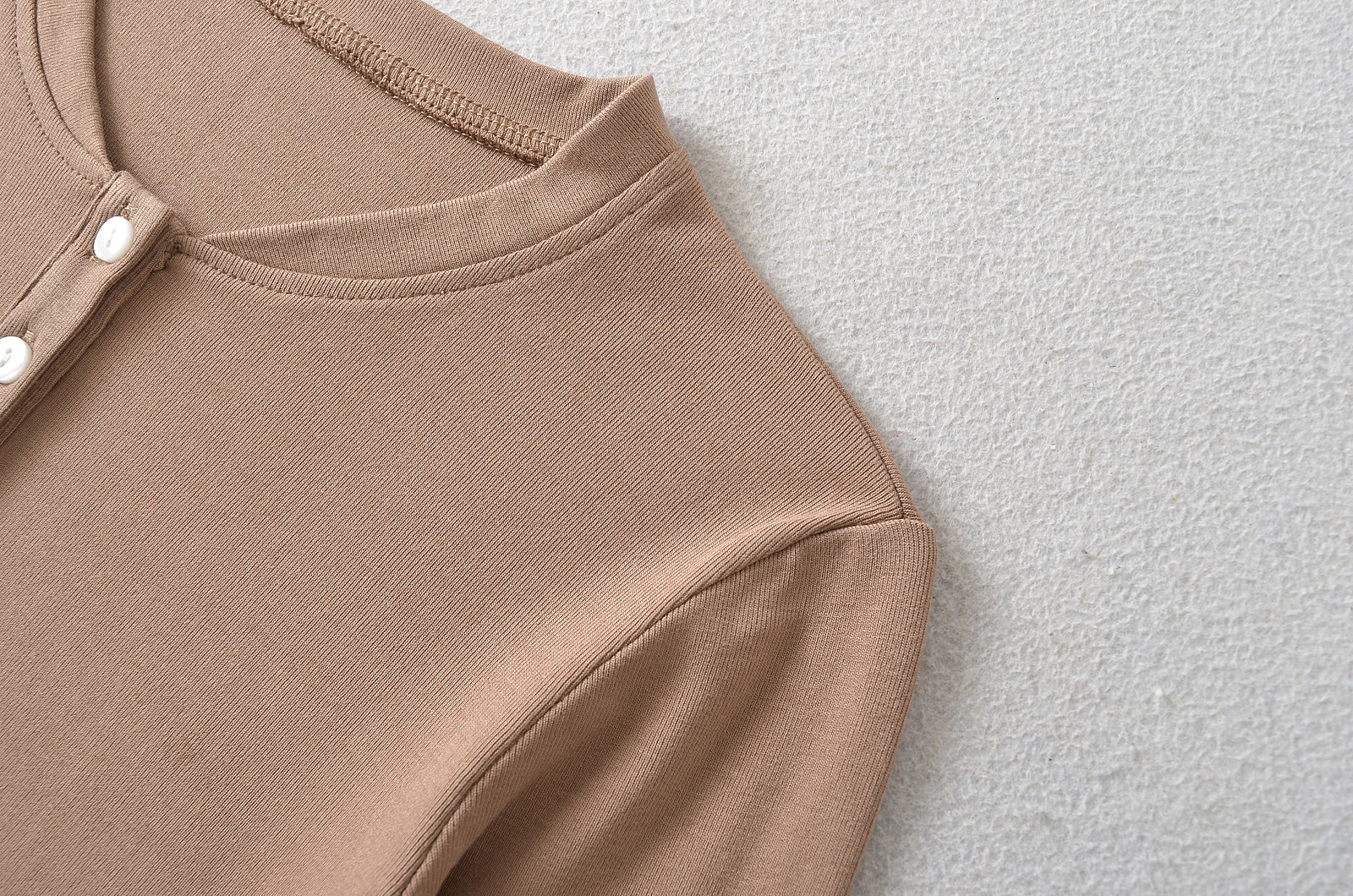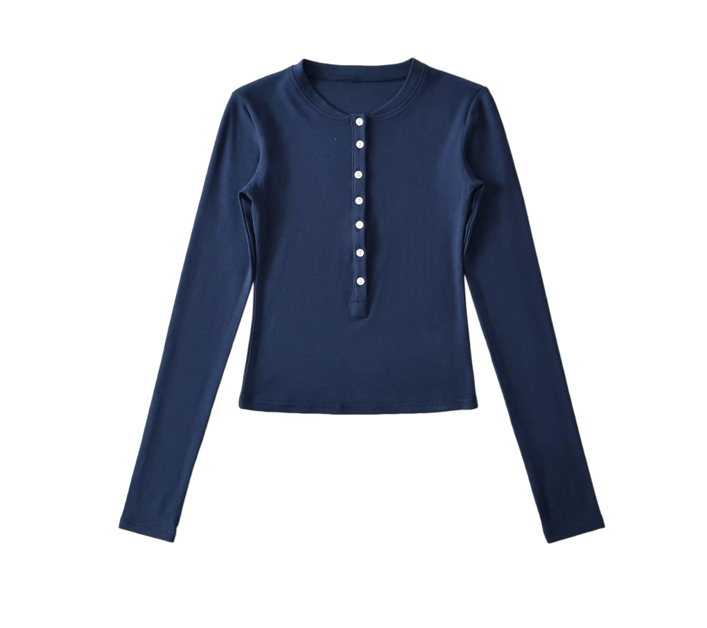 This long sleeve button-up T-shirt combines the casual comfort of a tee with the refined detail of a button-up design. Crafted for versatility, it offers a polished look suitable for layering or wearing alone. The long sleeves provide added warmth and coverage, making it ideal for transitional weather. Its tailored fit ensures a sleek silhouette, while the button-up front adds a touch of sophistication to your everyday wardrobe. Perfect for both professional and casual settings, this piece balances style and practicality with expert craftsmanship.