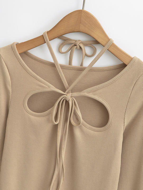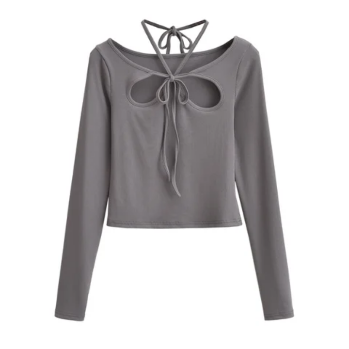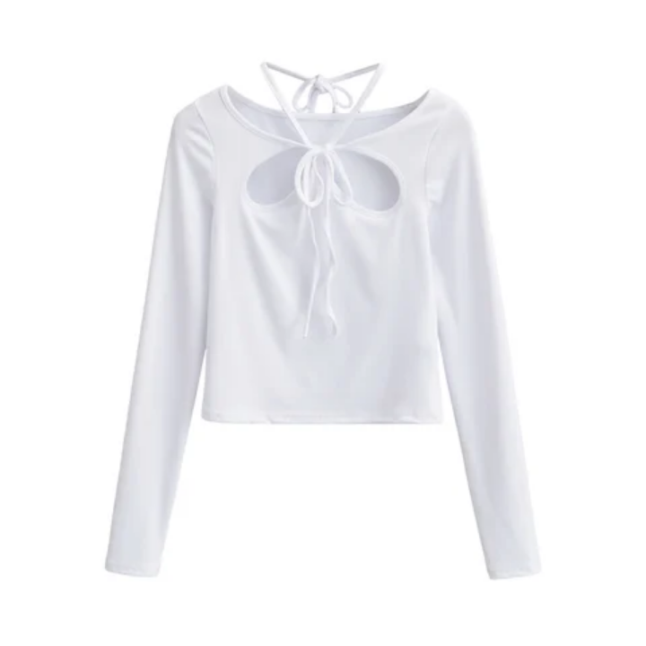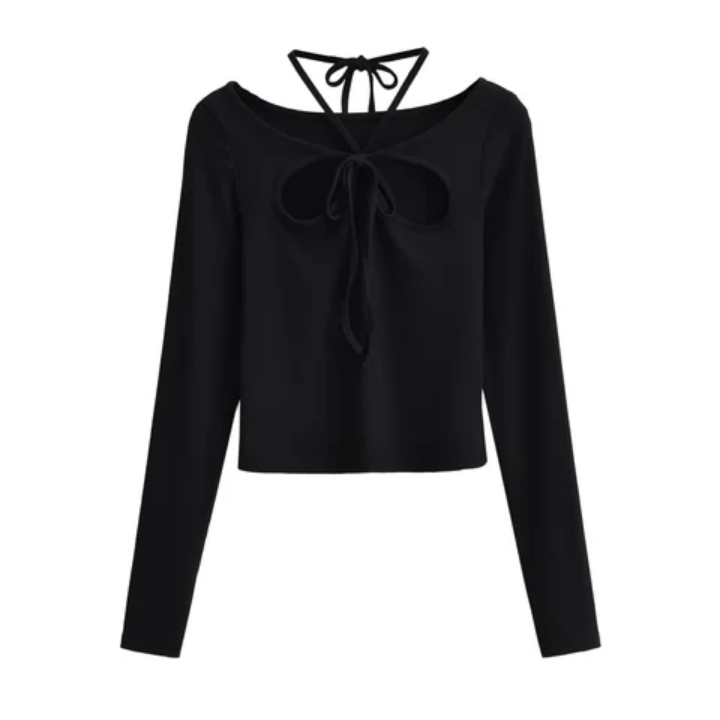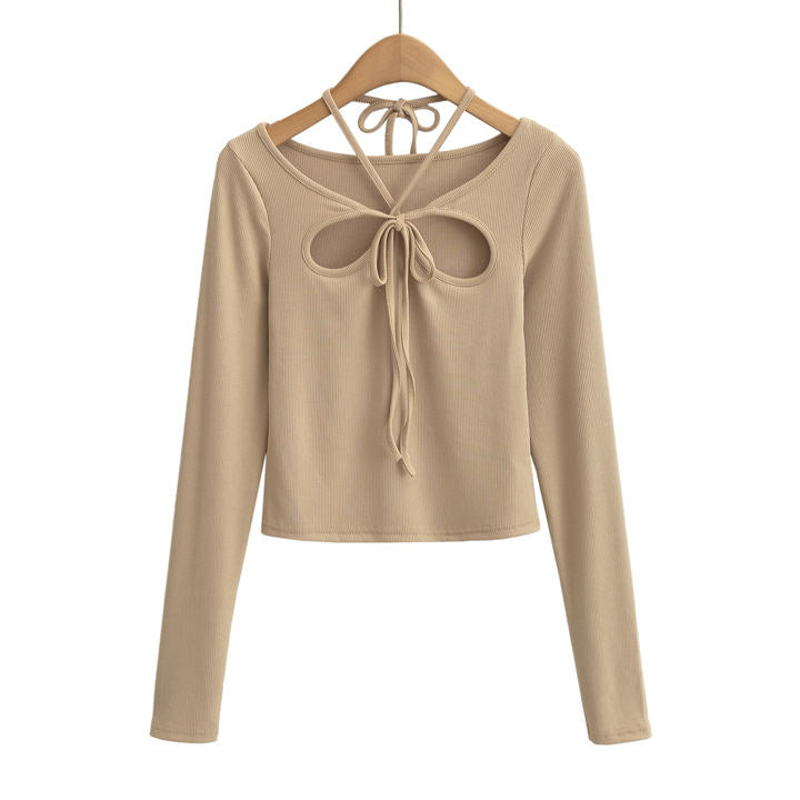 This meticulously designed knit top features strategic front hollow-out patterning that creates visual dimension and textural interest. The long sleeve construction provides versatile coverage while the thoughtful openwork detailing introduces breathability and contemporary appeal. Expertly crafted with attention to structural integrity, this sophisticated piece maintains its form while offering a refined balance between coverage and revelation.