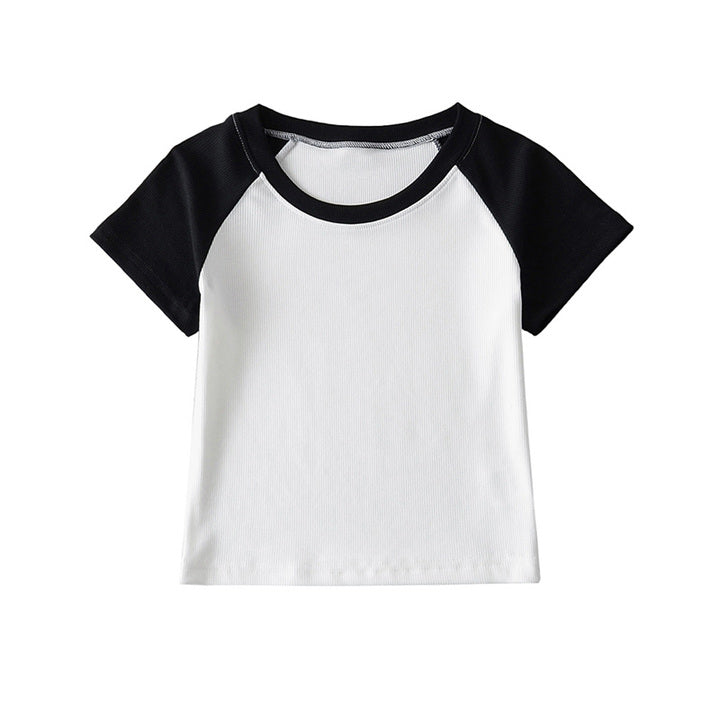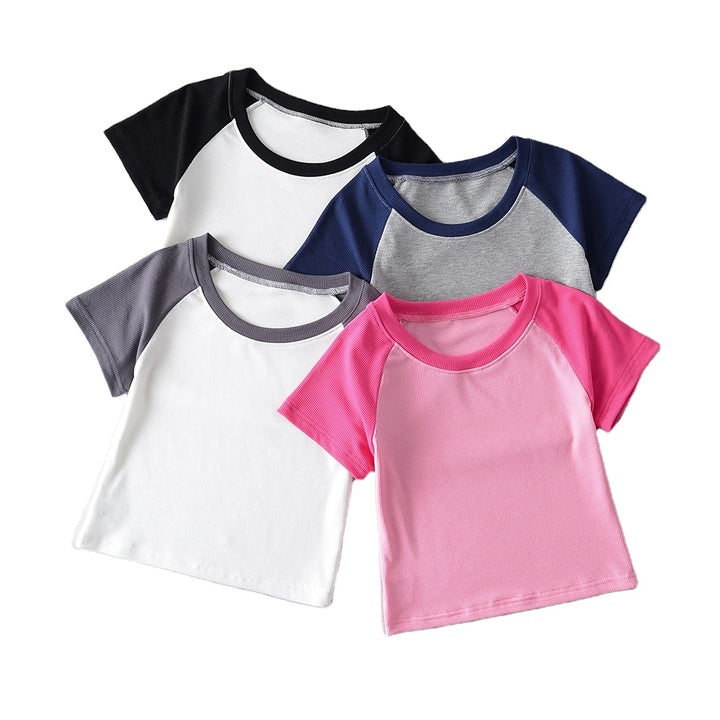 This short sleeve crop t-shirt features a classic crew neck and a solid color design, offering a versatile and stylish option for casual wear. Its cropped length provides a modern silhouette, while the soft fabric ensures comfort throughout the day. Ideal for pairing with high-waisted bottoms, this tee combines simplicity with contemporary fashion for effortless everyday style.