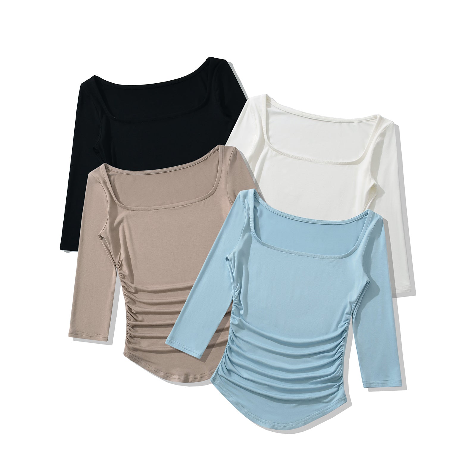 Square Collar Short Sleeve T-Shirts offer a modern twist on classic casual wear with their distinctive square neckline. Crafted for comfort and style, these tees provide a flattering fit that enhances your silhouette while ensuring breathability throughout the day. Ideal for layering or wearing alone, they combine contemporary design with everyday practicality, making them a versatile addition to any wardrobe.