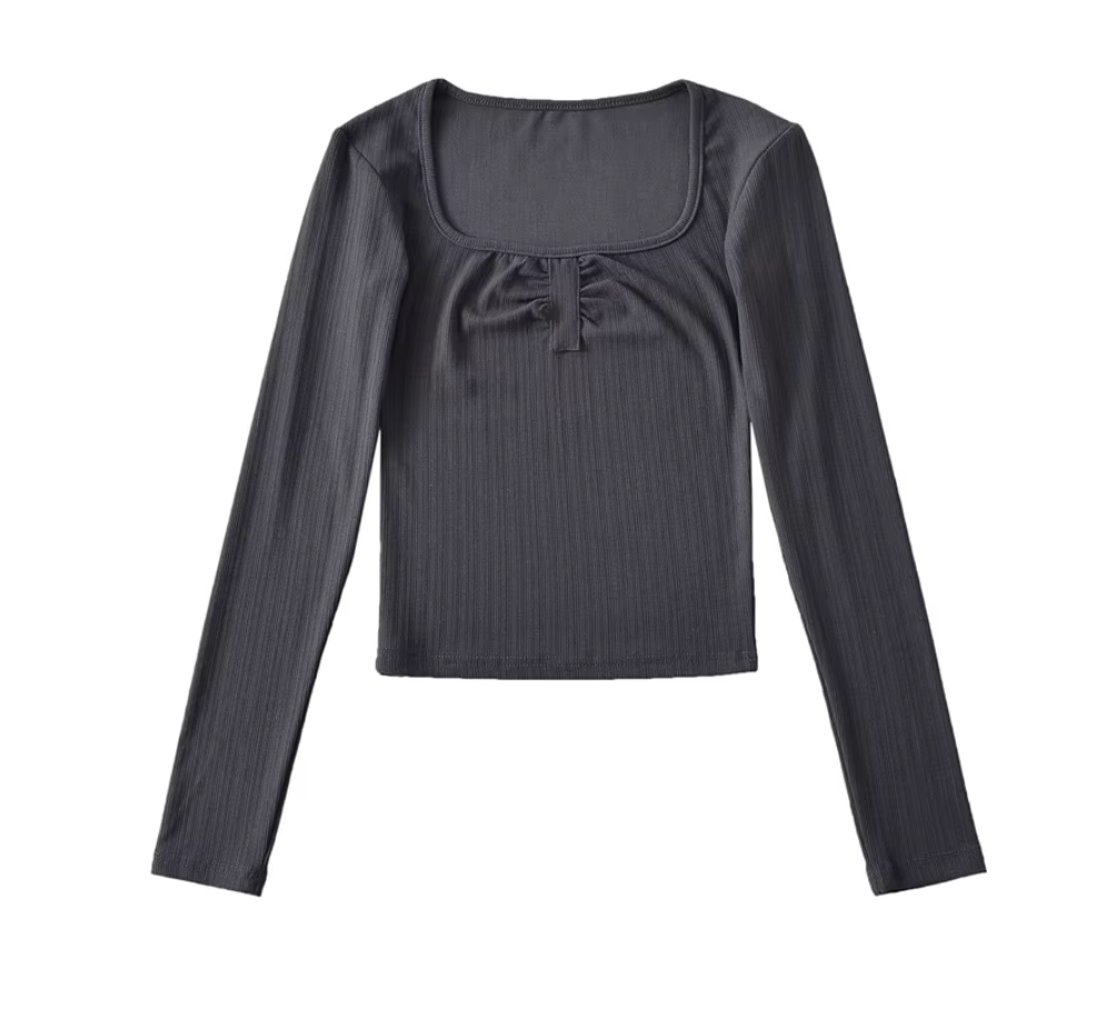 Square Collar Long Sleeve T-Shirt