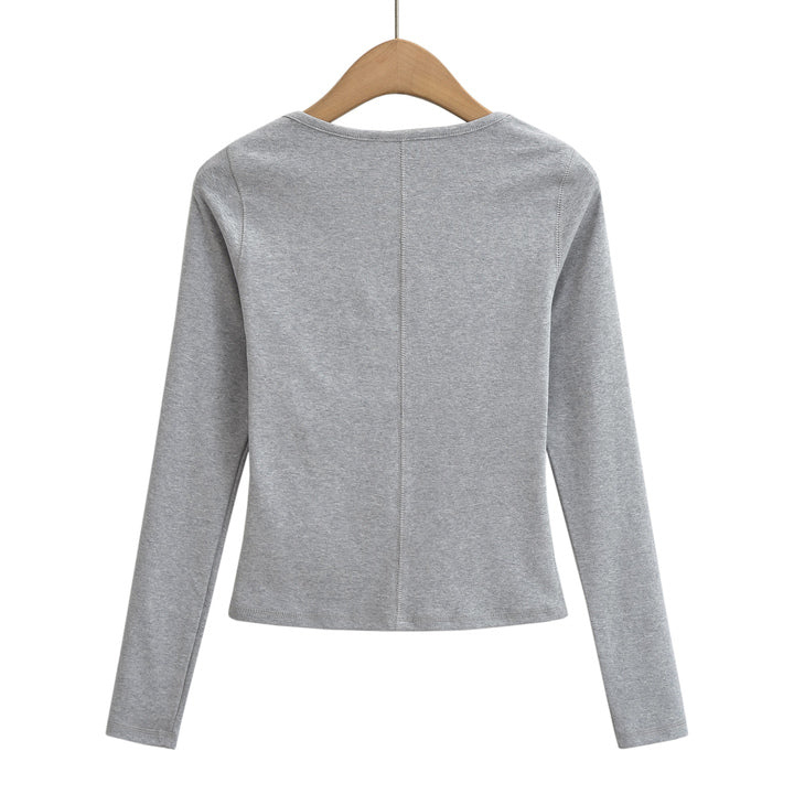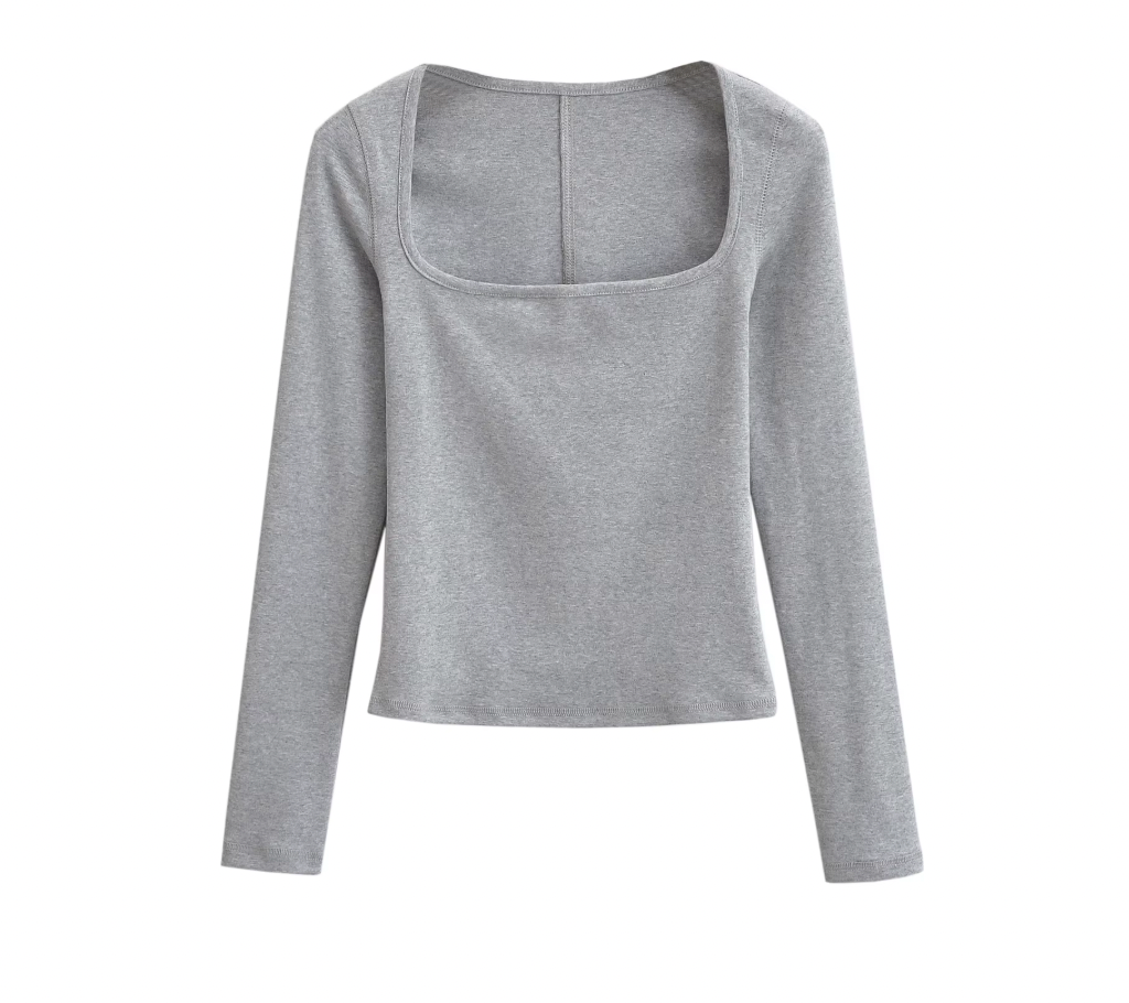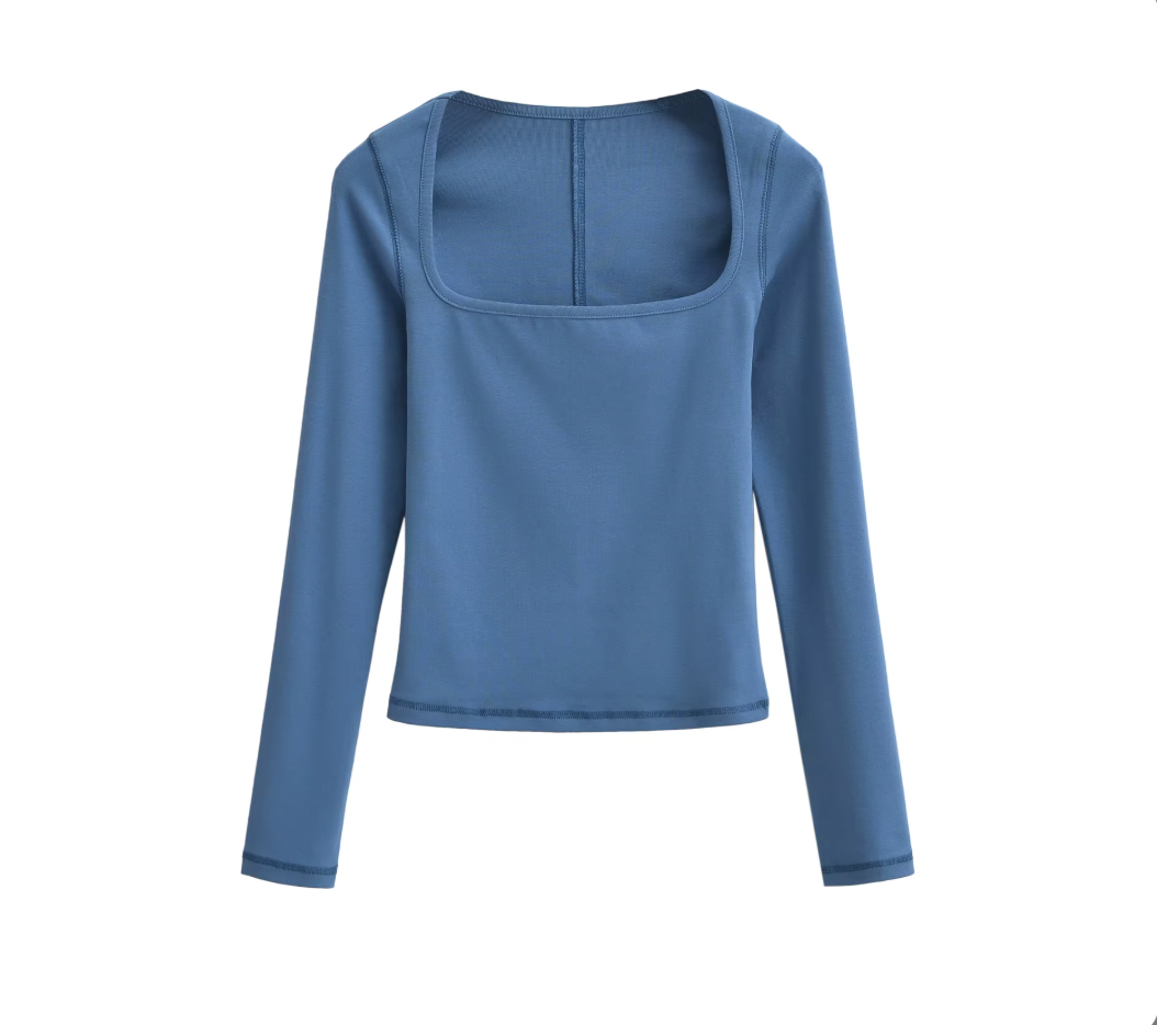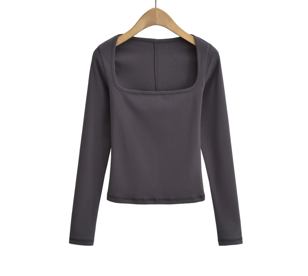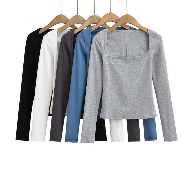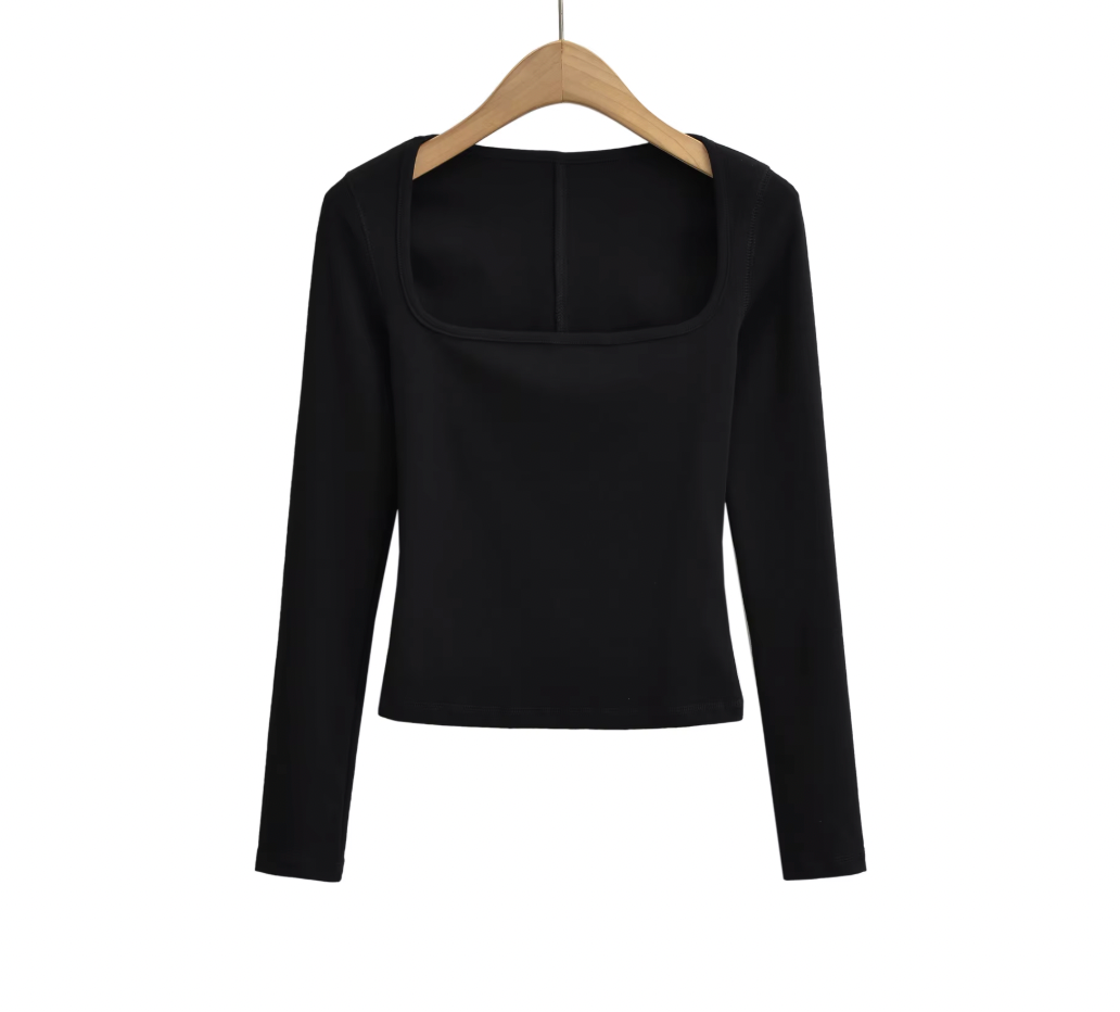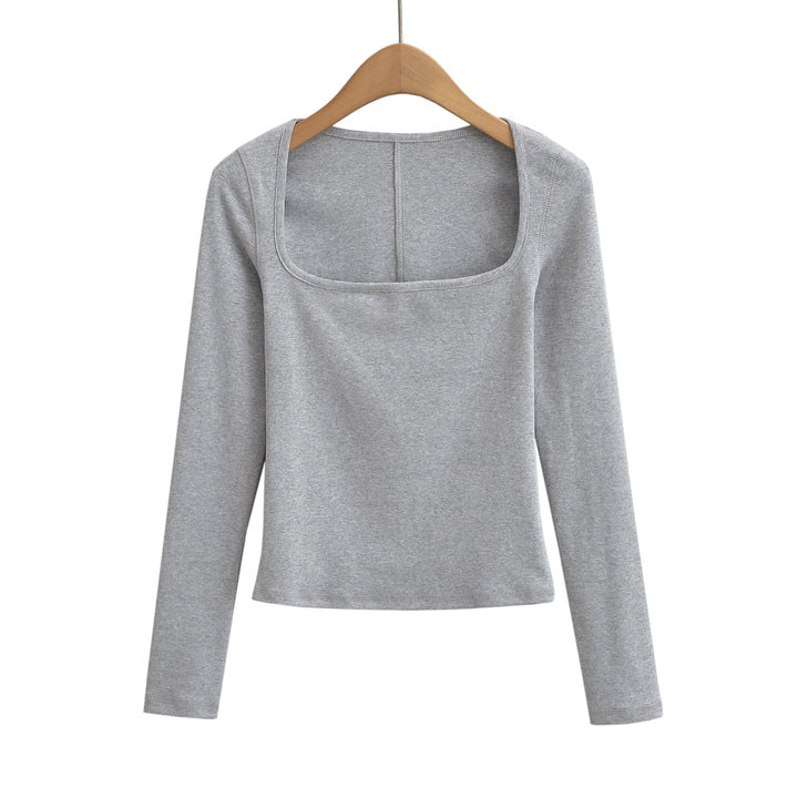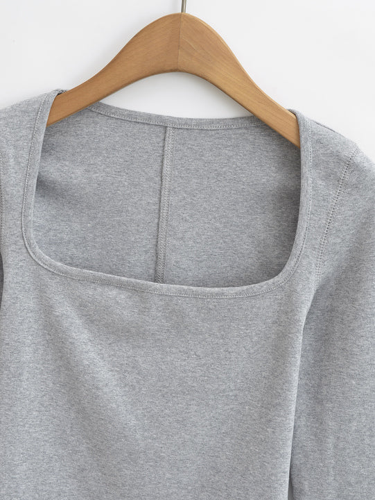 This Square Collar Long Sleeve T-Shirt combines contemporary design with comfort. Featuring a distinctive square neckline, it offers a modern twist on a classic silhouette. Crafted from soft, breathable fabric, it ensures all-day wearability while the long sleeves provide added coverage and versatility. Ideal for layering or wearing alone, this piece elevates your wardrobe with subtle sophistication and expert tailoring.