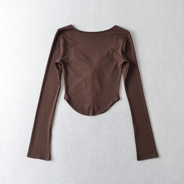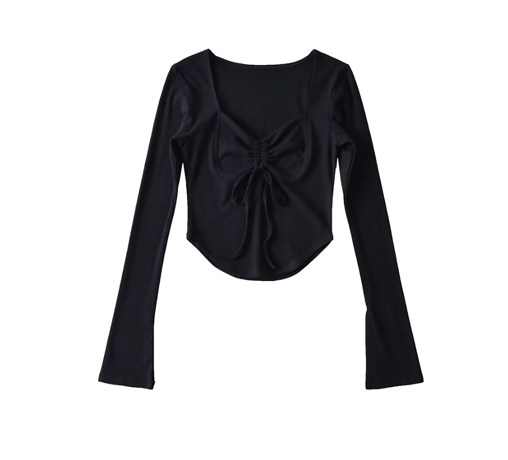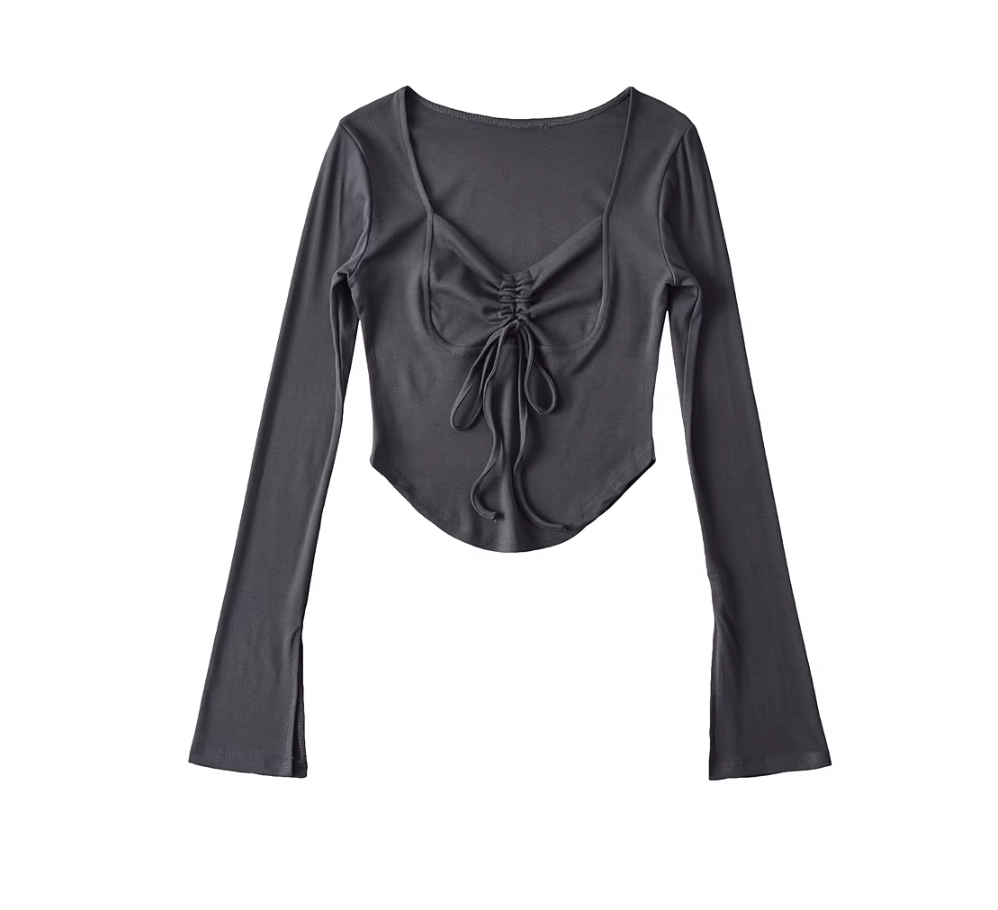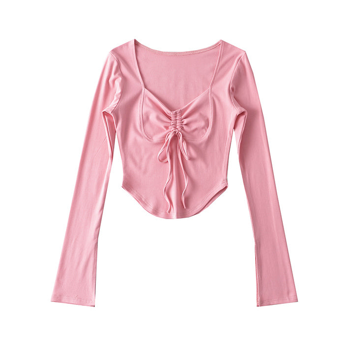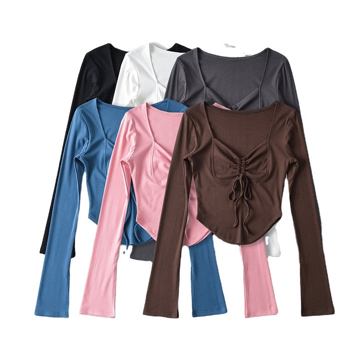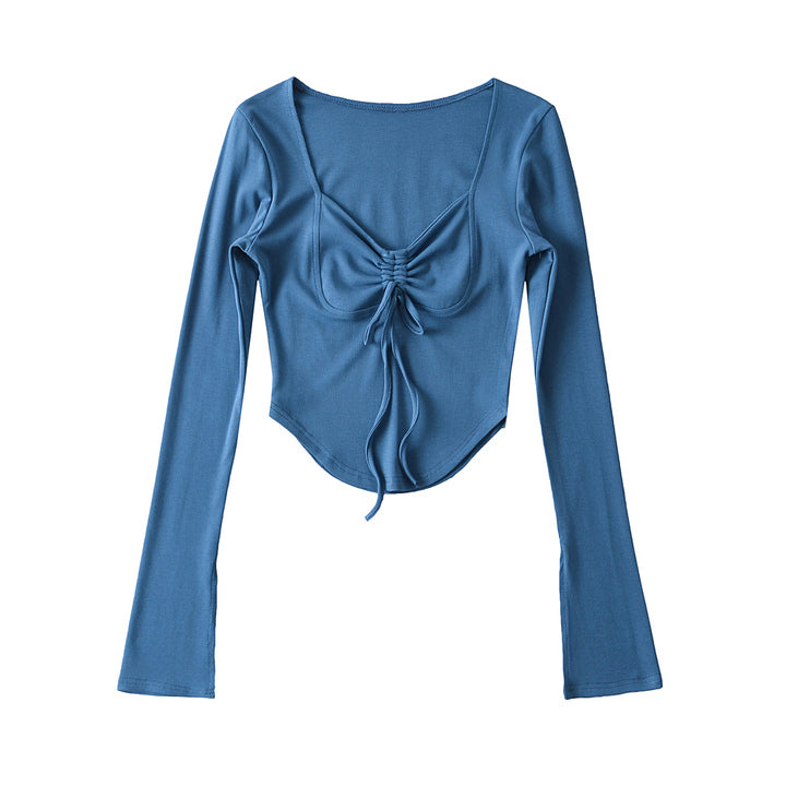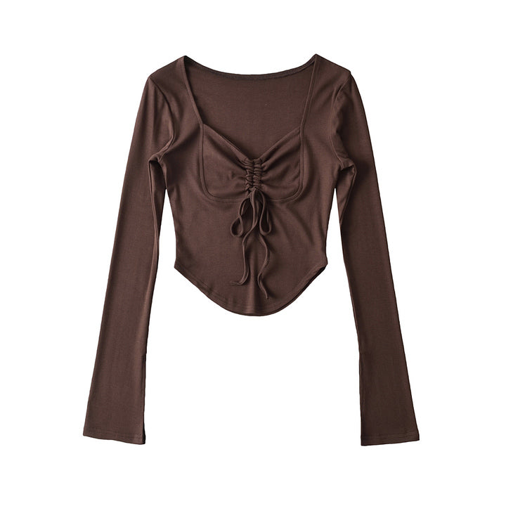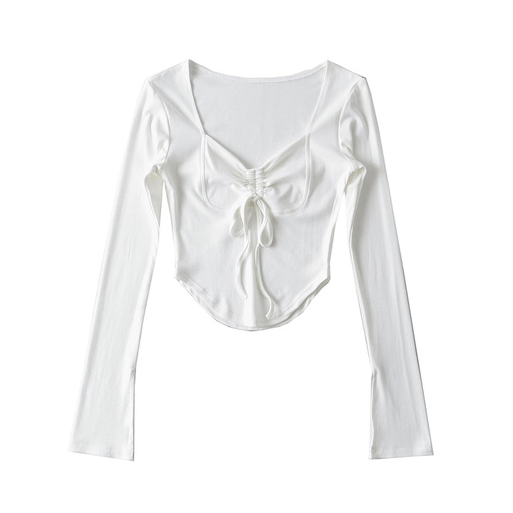 Square Collar Front Lace up Long Sleeve T-Shirt