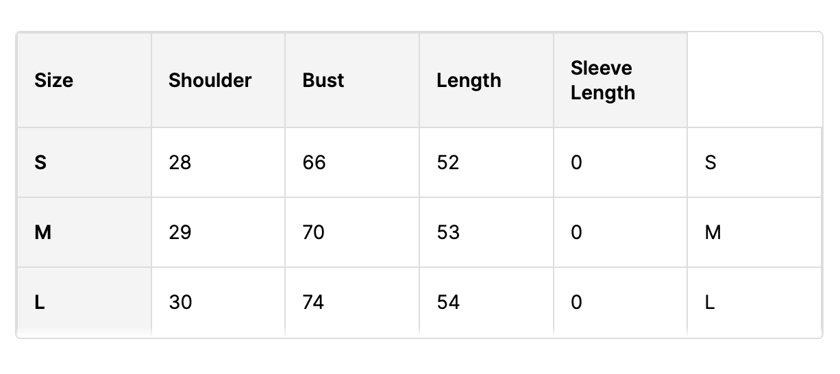 - Sleeve Length: Sleeveless