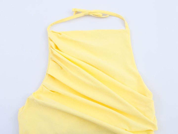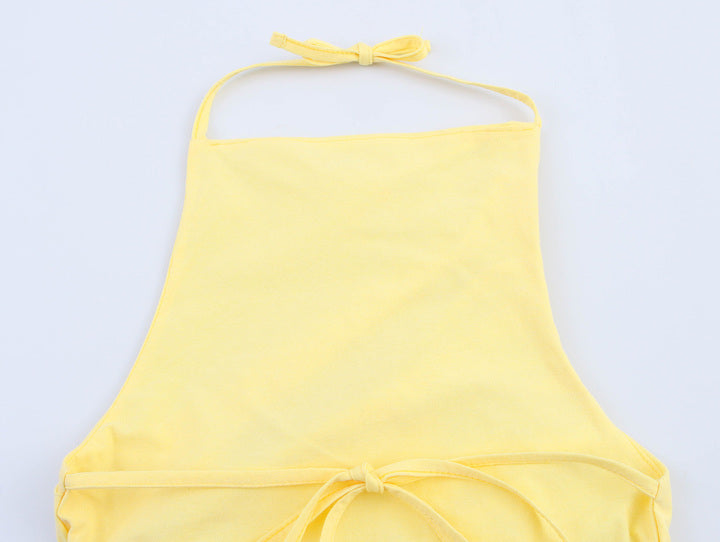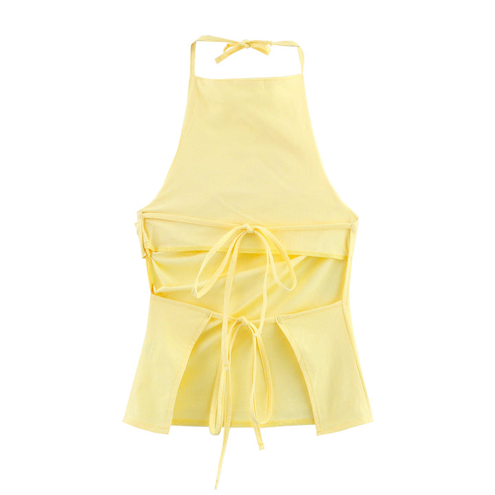 This Lace Yellow Halter Tank Top combines delicate lace detailing with a vibrant yellow hue, offering a stylish and breathable option for warm weather. Its halter design provides a flattering fit that highlights the shoulders, making it ideal for layering or wearing alone. Perfect for casual outings or summer events, this top balances comfort with a chic, expert-crafted look.