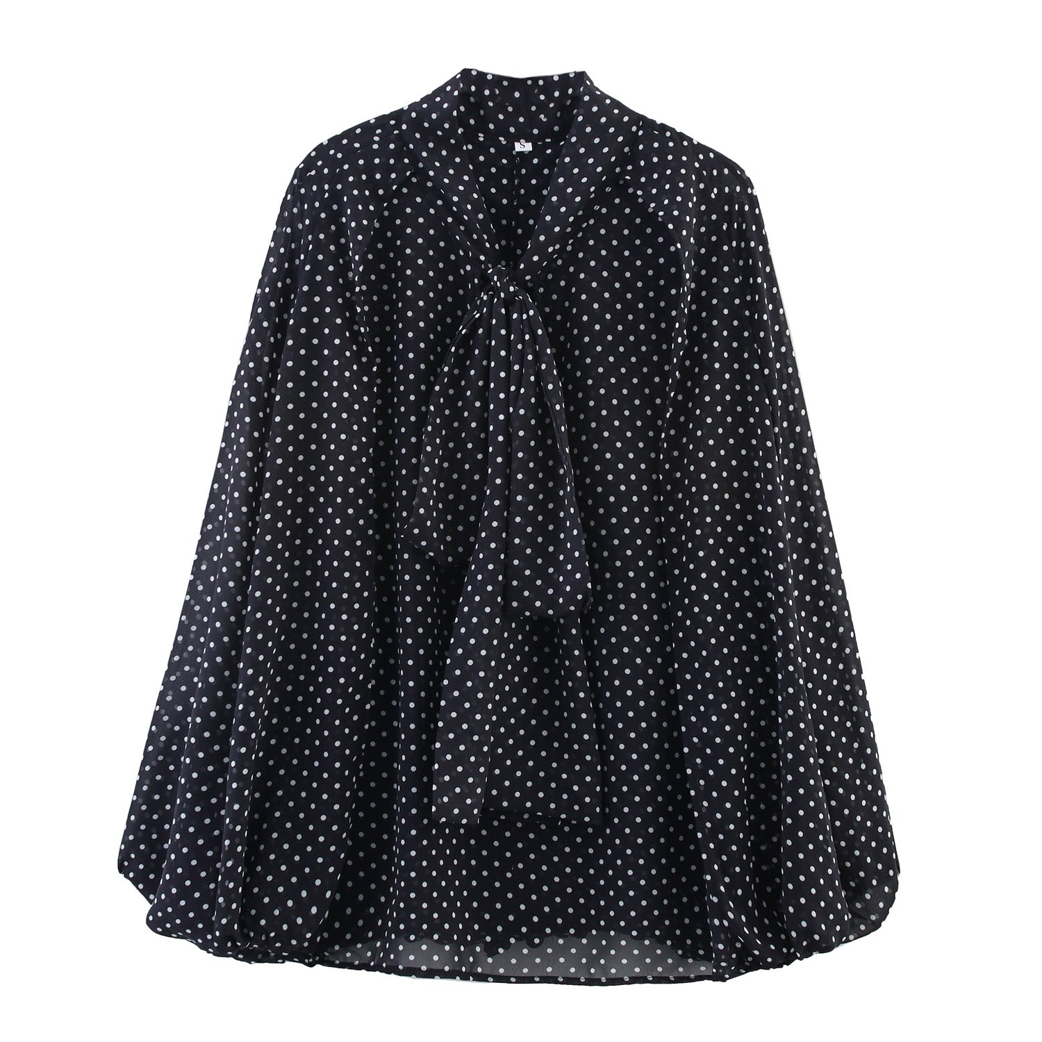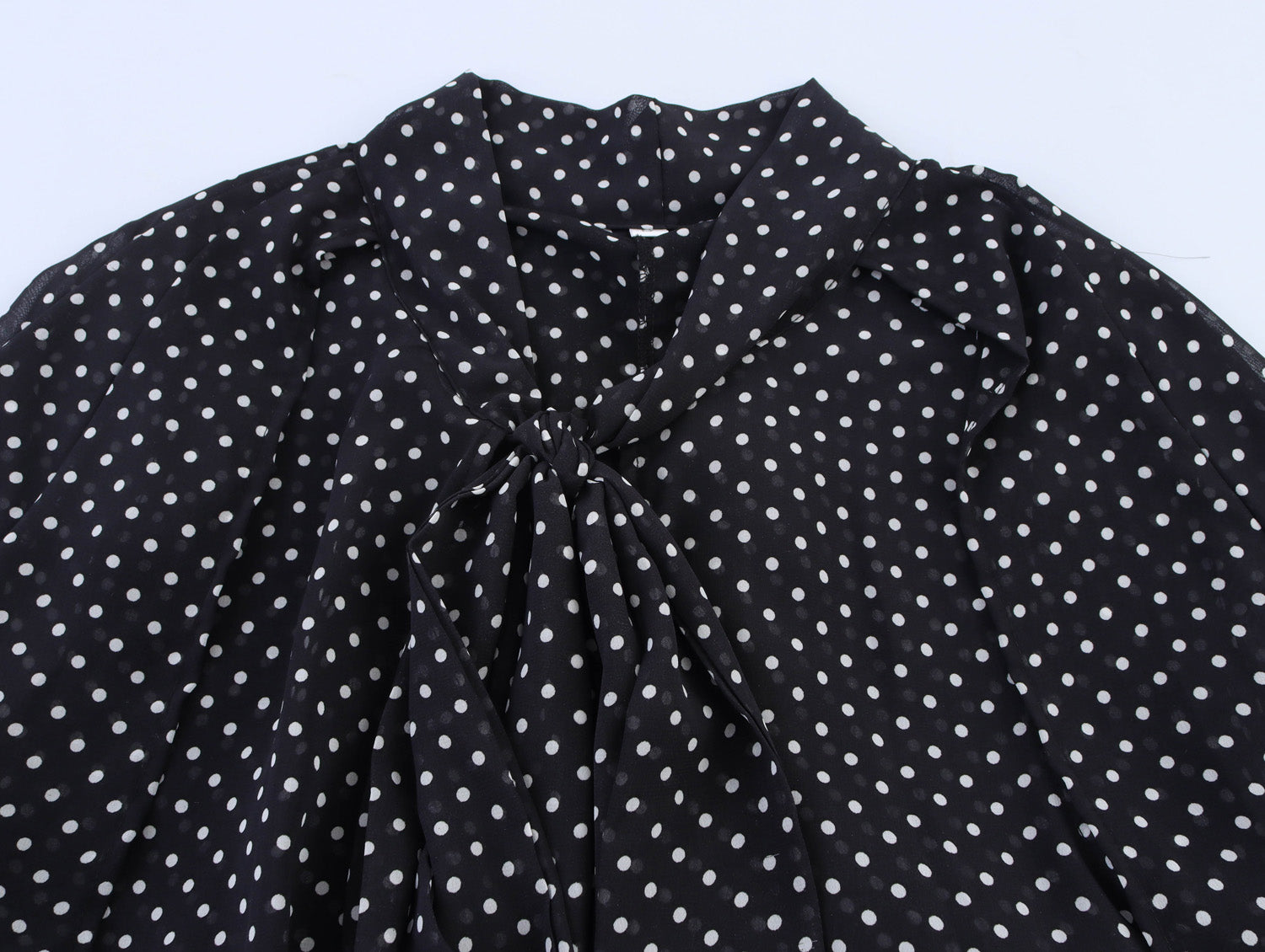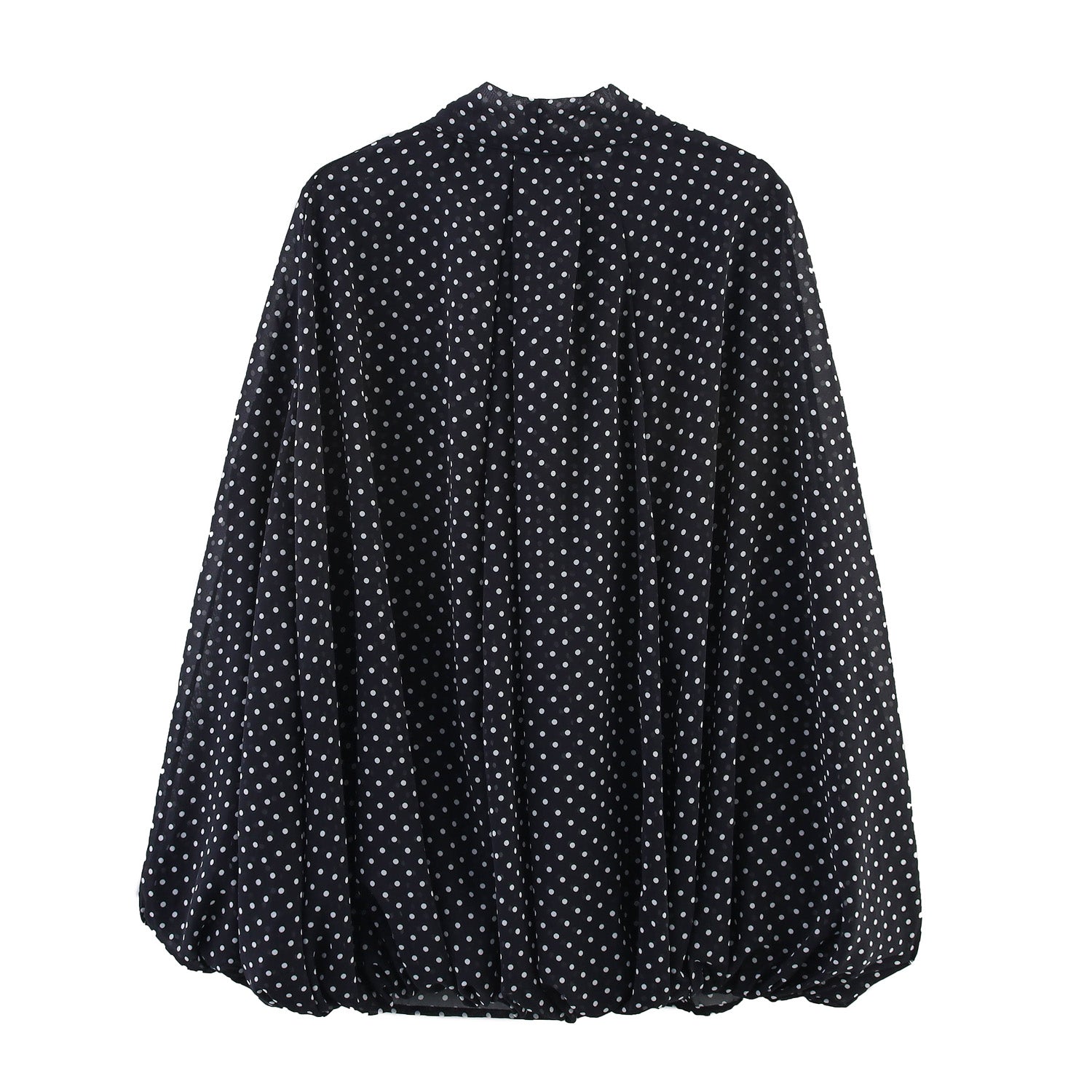 Bow Tie Collar Black Color Polka Dot Shirt