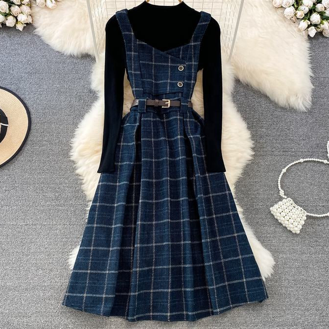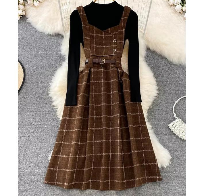 Introducing our French Style Strap Dress & Knit Top! Featuring a classic and elegant design, this dress and top set exudes sophistication and charm. Made with high-quality materials, it offers both comfort and style. Perfect for any occasion, this set will elevate your wardrobe and make you stand out in the crowd.