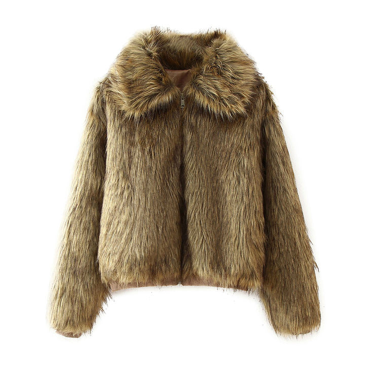 Women's Solid Color Zipper Feather Jacket