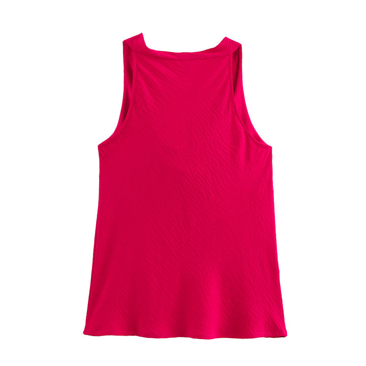 This rose-colored sleeveless tank top offers a refined blend of comfort and style. Crafted for breathability and ease of movement,...