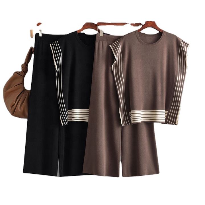This Women's Striped Knit Two-Piece Suit is the perfect addition to any professional wardrobe. Made with high-quality material, this suit boasts a timeless striped design that exudes sophistication. With its comfortable fit and versatile style, it offers the perfect blend of fashion and function. Stay stylish and confident all day long with this must-have suit.