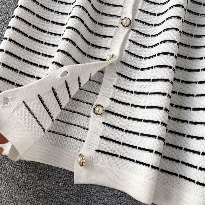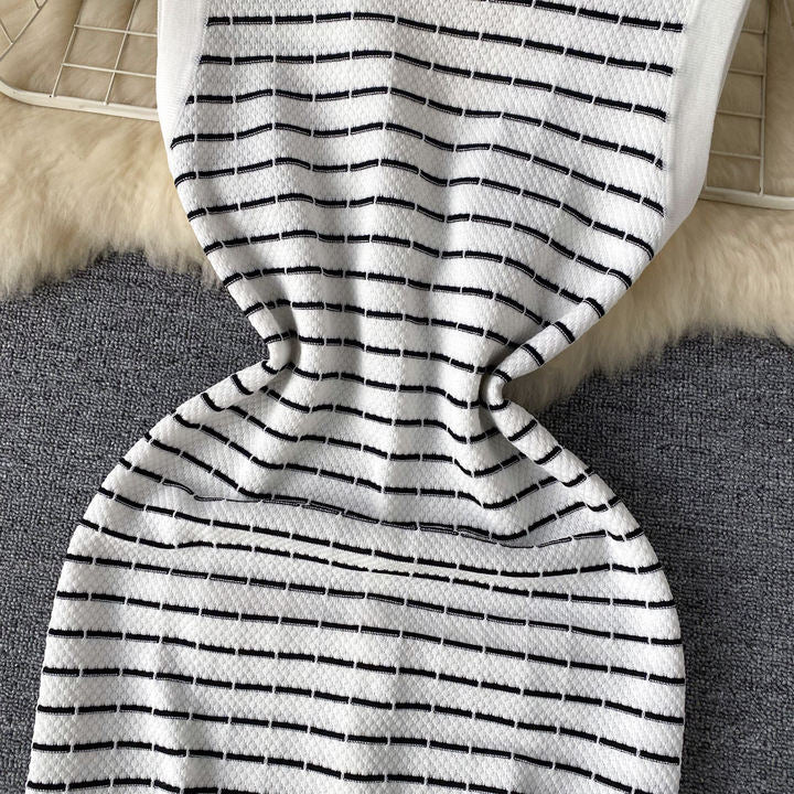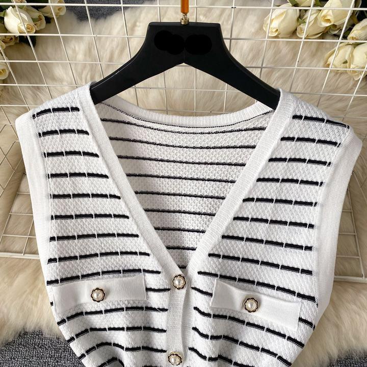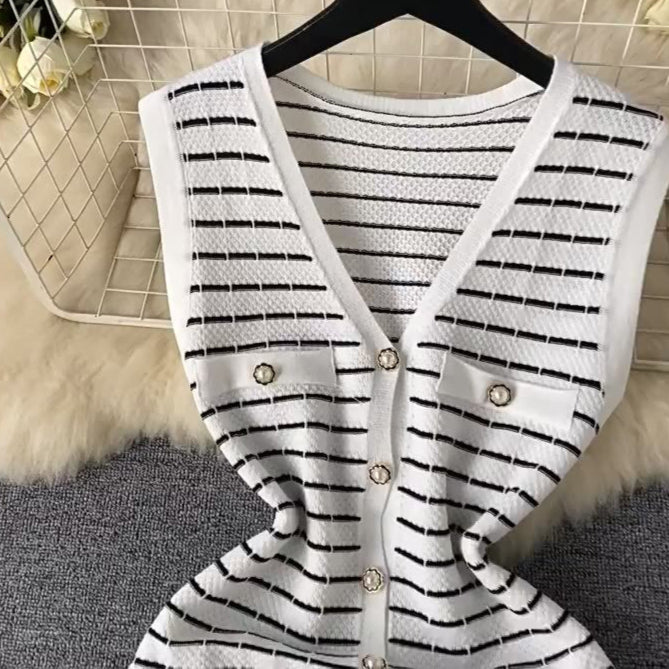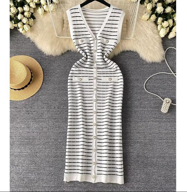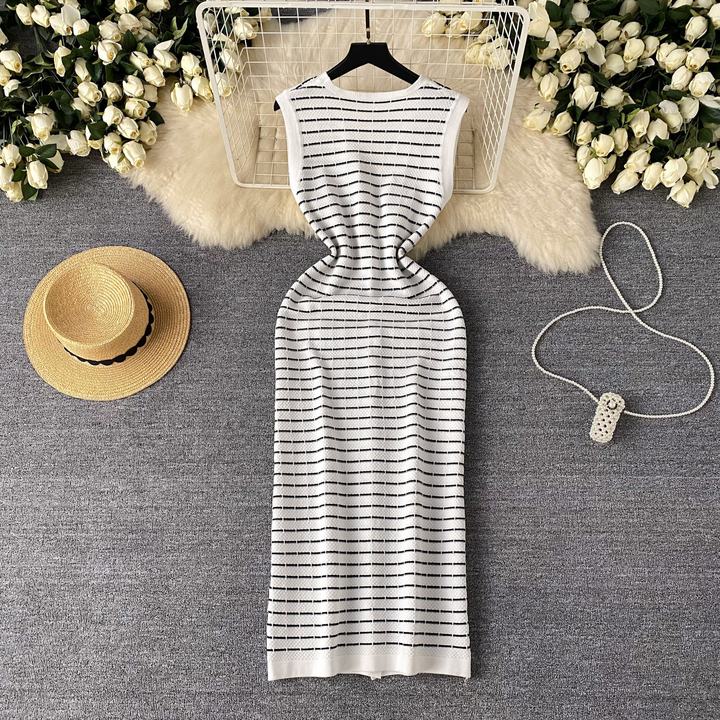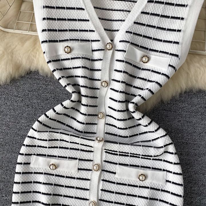 Expertly crafted with a custom striped design, this sleeveless knit dress features a flattering v-neckline. Made from quality materials, it...