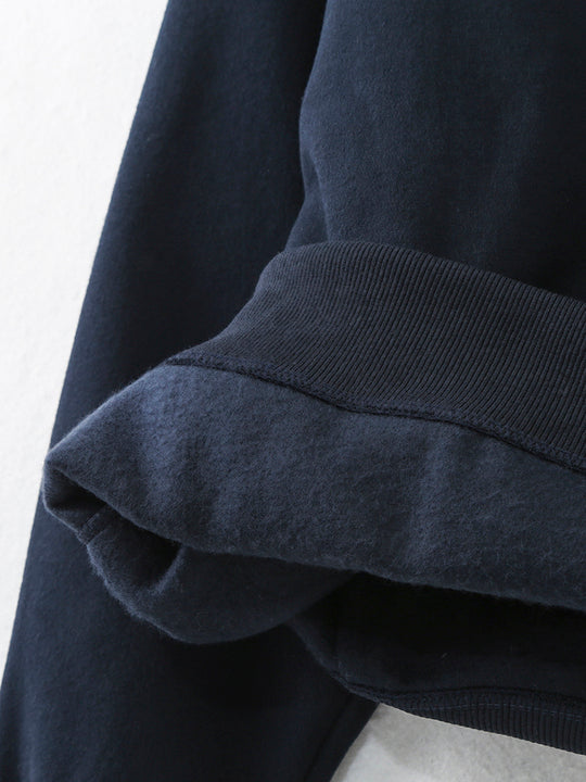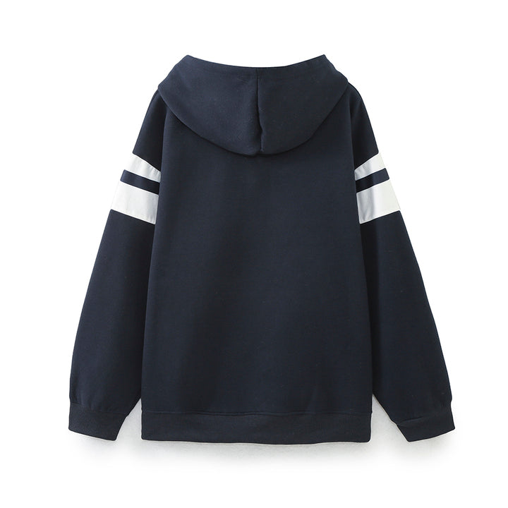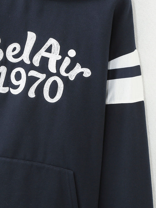 Letter Embroidery Navy Long Sleeve Hoodie Set