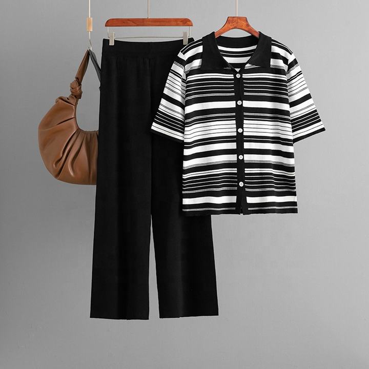 This European Striped Knit T-Shirt & Pants Set offers a chic and comfortable option for any occasion. The unique striped pattern adds a touch of European style, while the soft knit fabric ensures a comfortable and flattering fit. Perfect for a casual day out or a weekend getaway, this set is a must-have for any fashion-forward wardrobe.