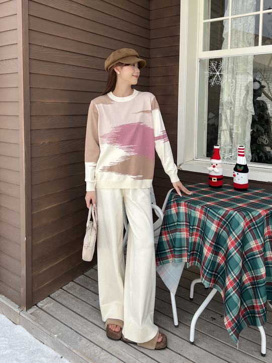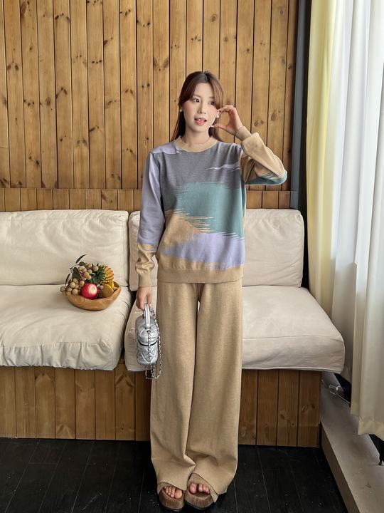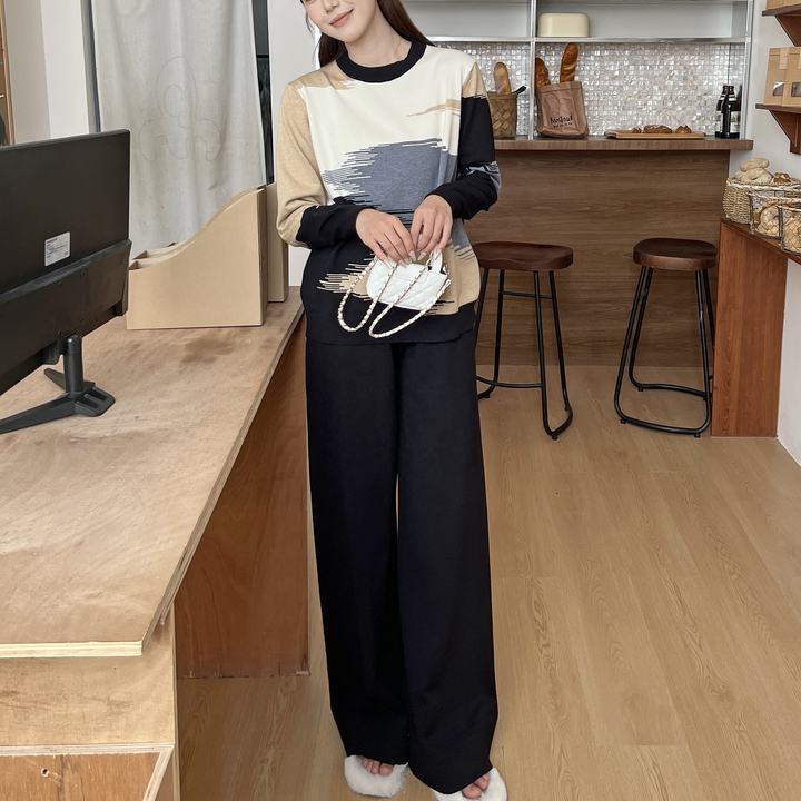 This Round Neck Knit Set offers a comfortable and stylish look. Made with a trendy wide-leg design, it provides a...