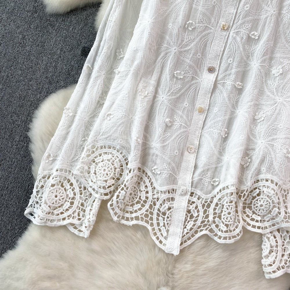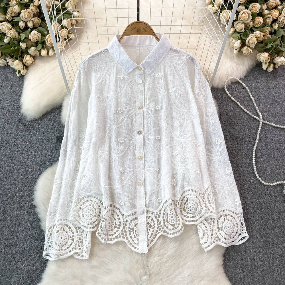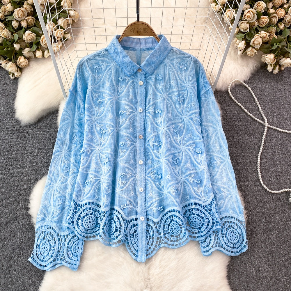 Elevate your casual wardrobe with this Long Sleeve Stereoscopic Flower Lace Shirt, designed for women who appreciate refined details. Crafted with intricate floral lace, the shirt offers a three-dimensional texture that adds depth and elegance to your look. Its long sleeves provide comfortable coverage, making it ideal for transitional weather or layering. Perfect for pairing with jeans or skirts, this top blends sophistication with everyday wearability.