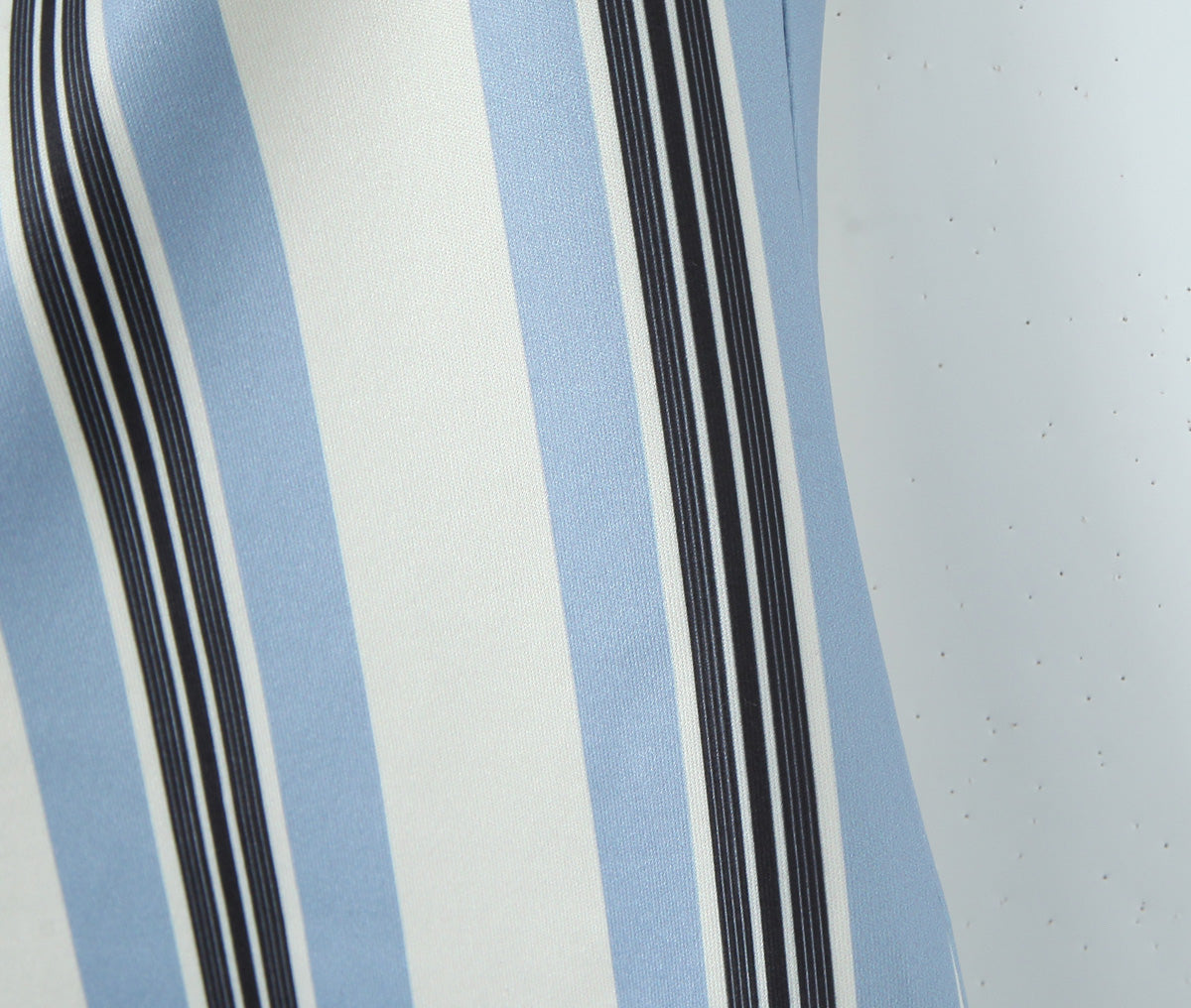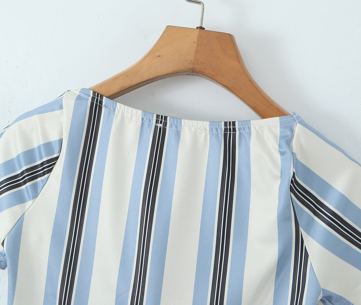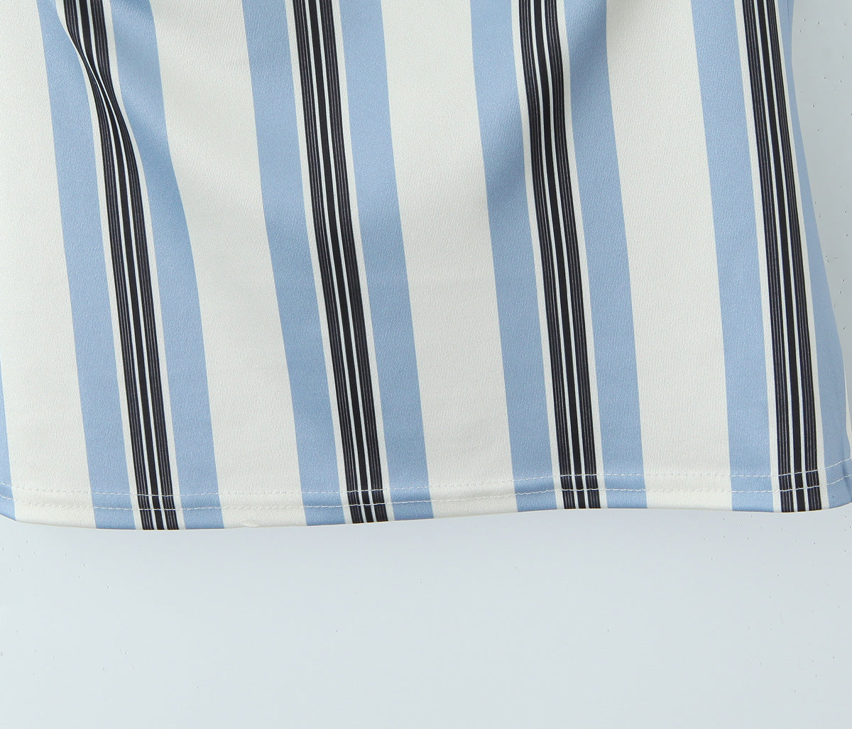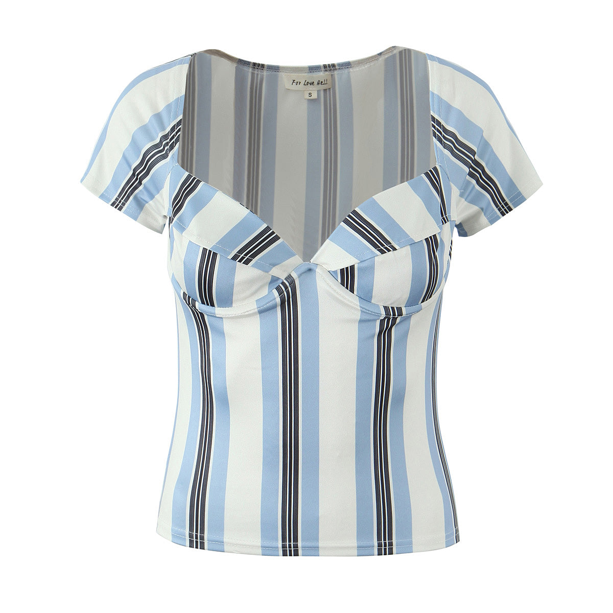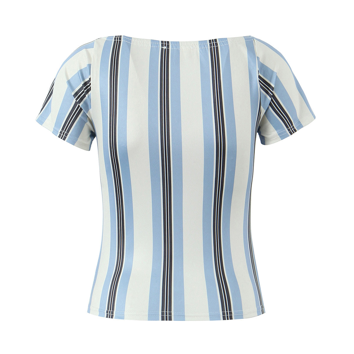 This Square Collar Striped Print T-shirt combines a modern neckline with classic stripes for a refined casual look. Crafted for comfort and style, its structured square collar adds a distinctive edge, while the striped pattern enhances visual appeal. Ideal for layering or wearing solo, this T-shirt offers versatility and a polished finish to your everyday wardrobe.