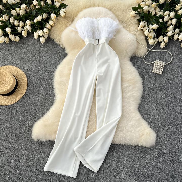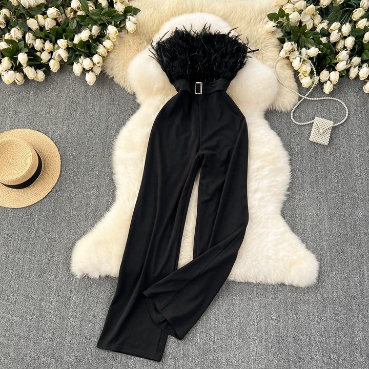 Get ready to turn heads this summer with our Sexy Summer Feather Slim Fit Jumpsuit. This stylish and form-fitting jumpsuit features a slim fit design and delicate feather detailing, making it perfect for any summer event. Feel confident and show off your figure while staying cool and stylish in our one-of-a-kind jumpsuit.