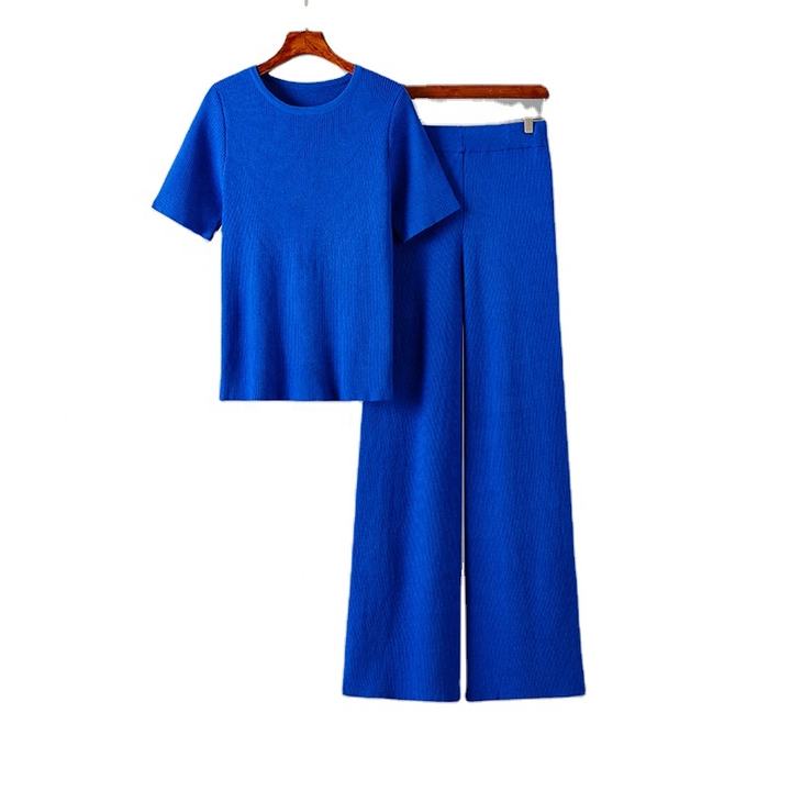 Summer Knit Two-Piece Set – High Waist & Short Sleeve