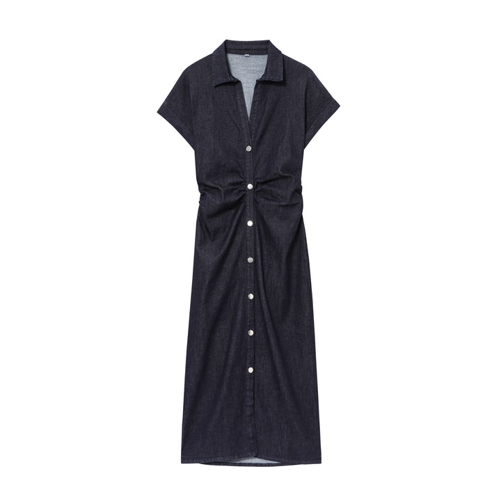 This Sleeve Denim Blue Shirt Dress combines classic denim durability with a tailored shirt dress silhouette, offering both comfort and style. Its long sleeves provide versatility for various seasons, while the blue denim fabric ensures a timeless, casual yet polished look. Ideal for layering or wearing alone, this dress is a practical addition to any wardrobe seeking effortless sophistication.