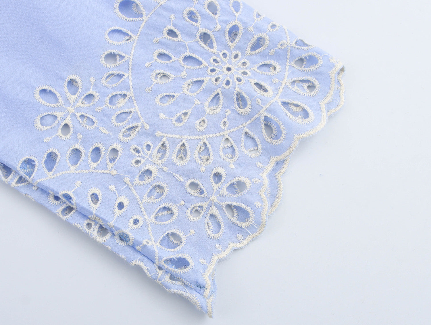 This long sleeve blue eyelet casual shirt combines classic style with breathable comfort. Crafted from lightweight fabric featuring delicate eyelet...