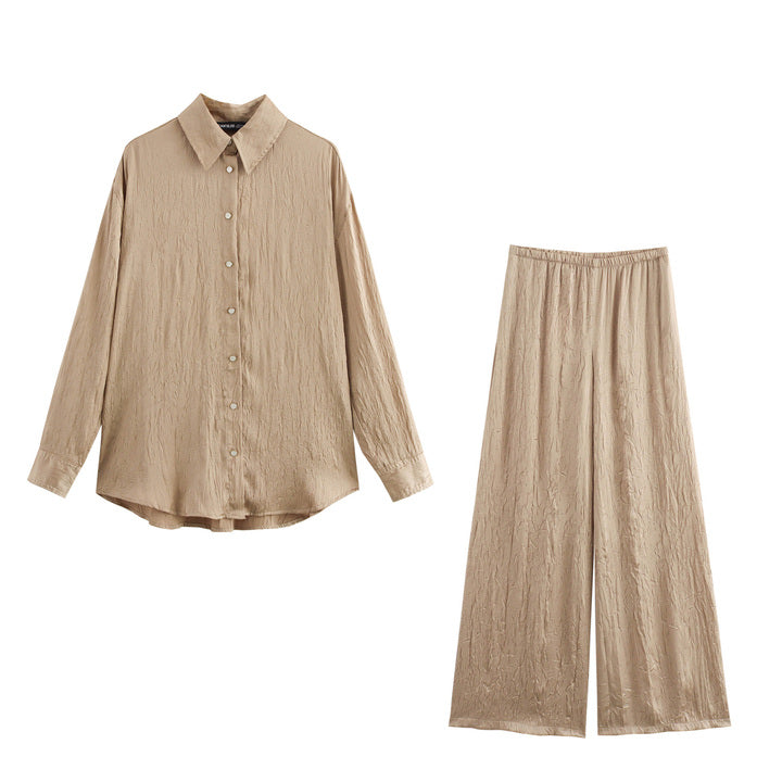 This long sleeve blouse set in a versatile khaki shade features a classic button-down design, combining timeless style with practical...