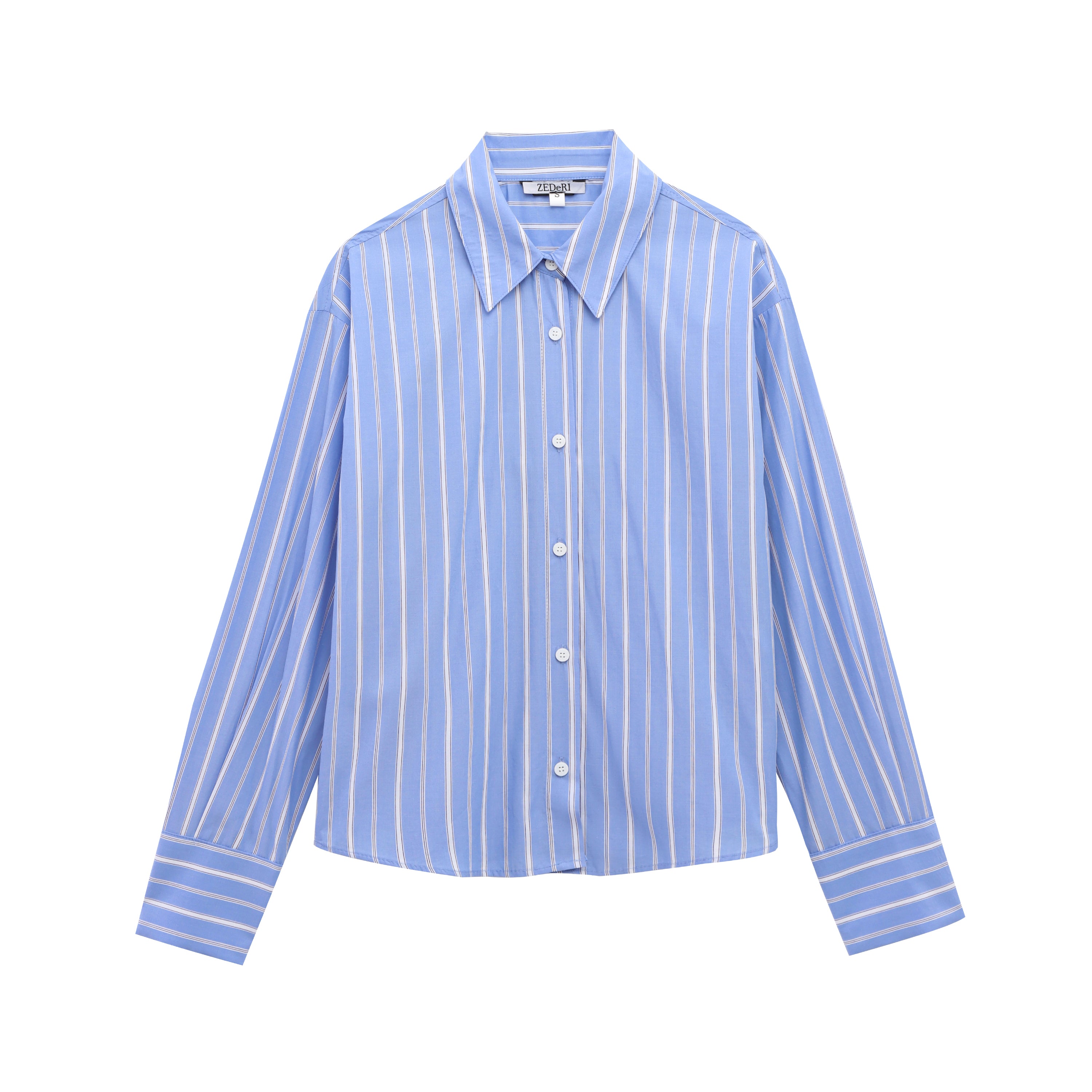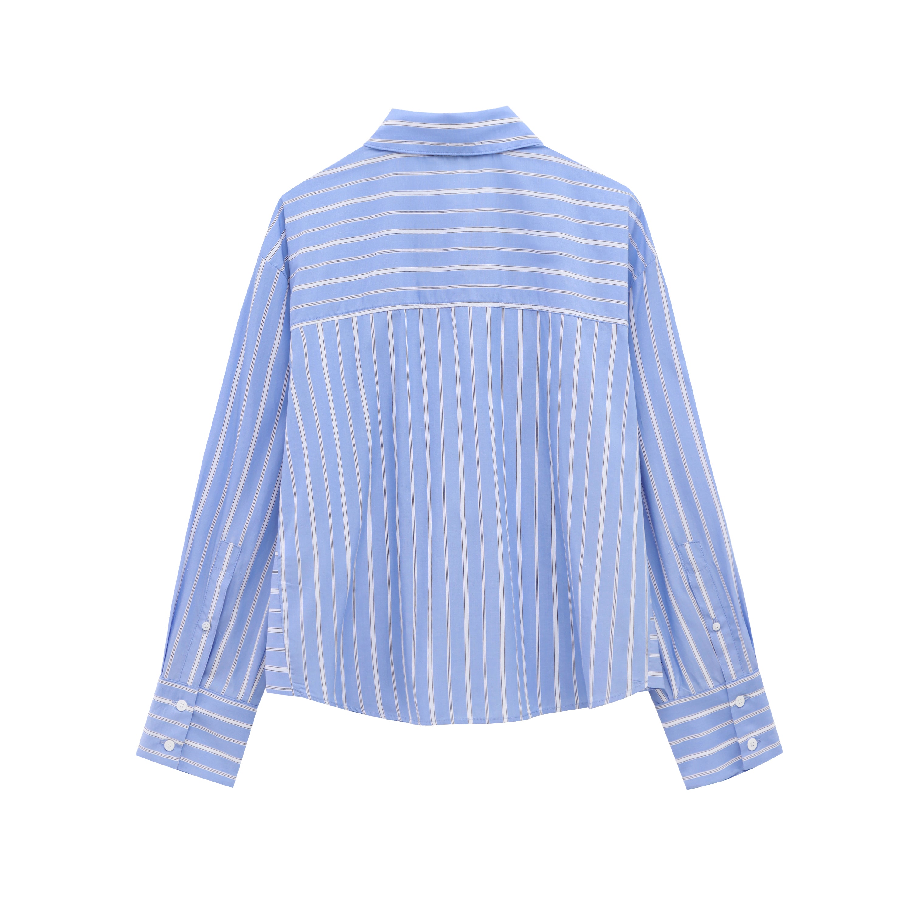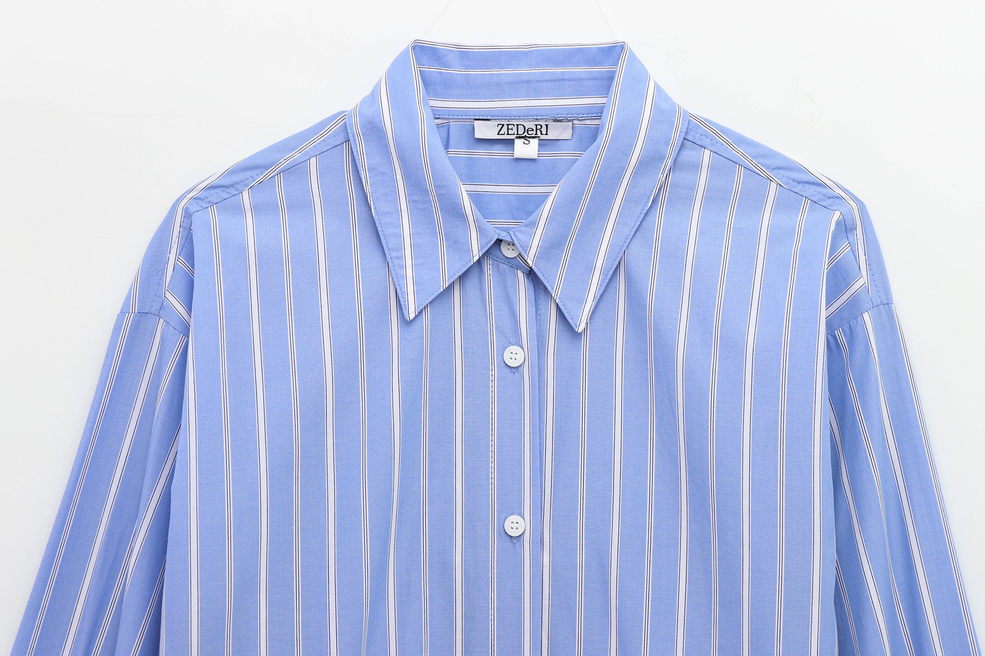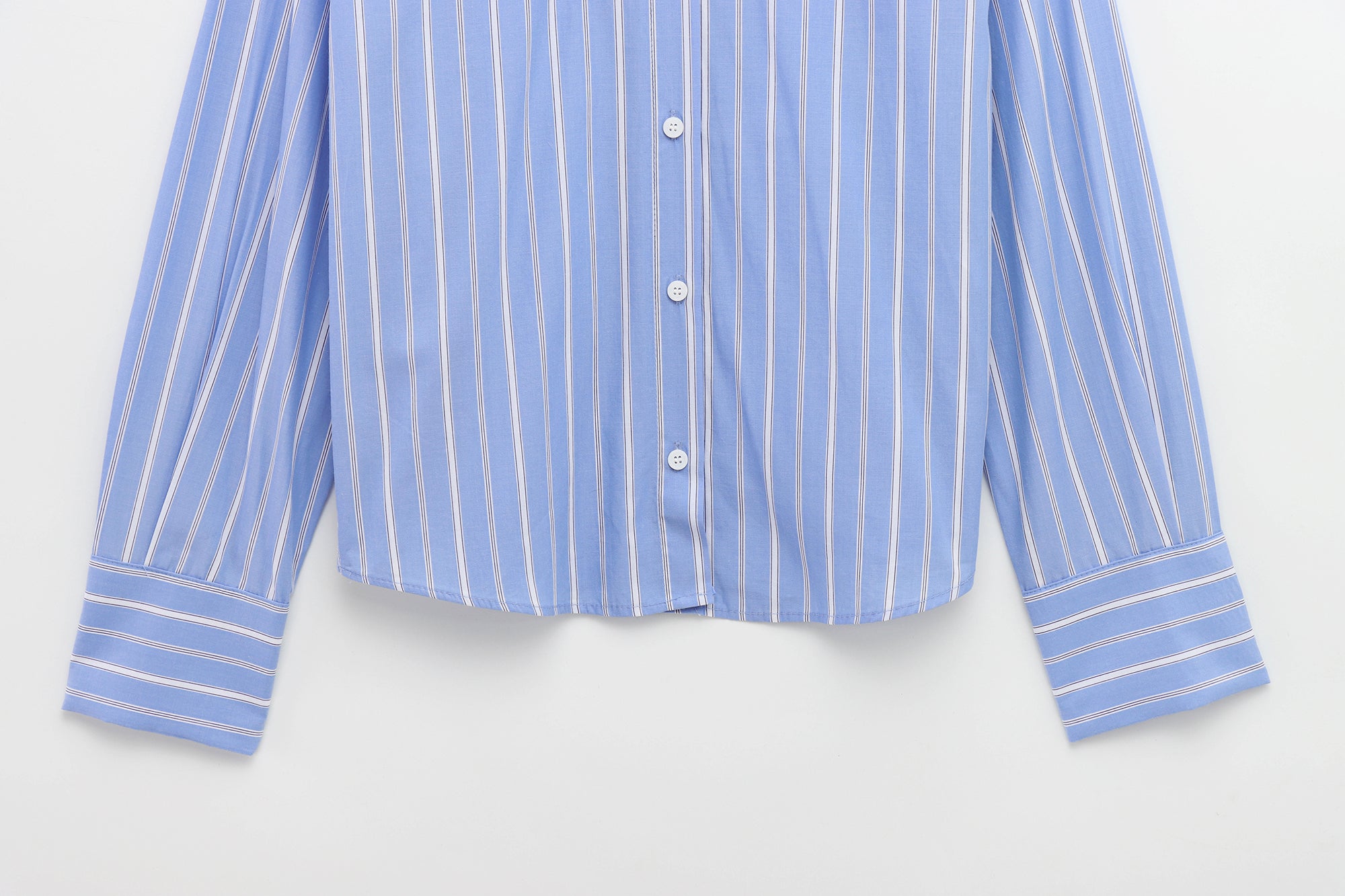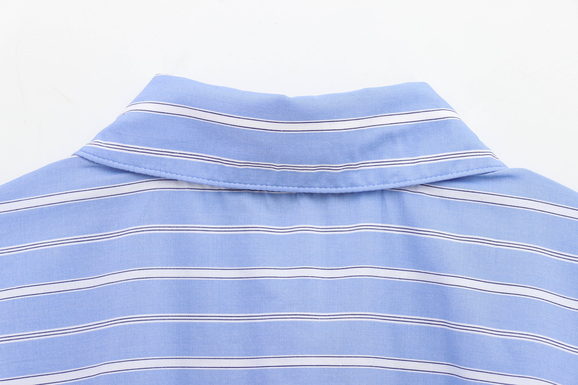This blue long sleeve casual shirt features a classic striped print, combining timeless style with everyday comfort. Crafted for versatility,...