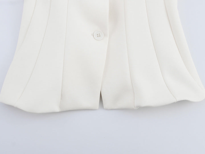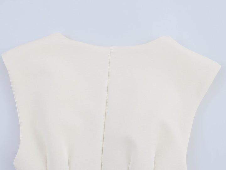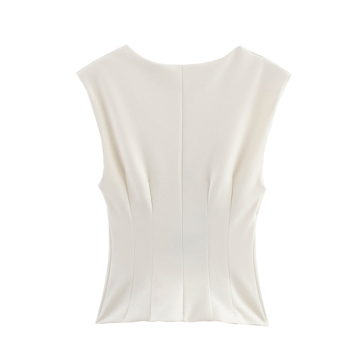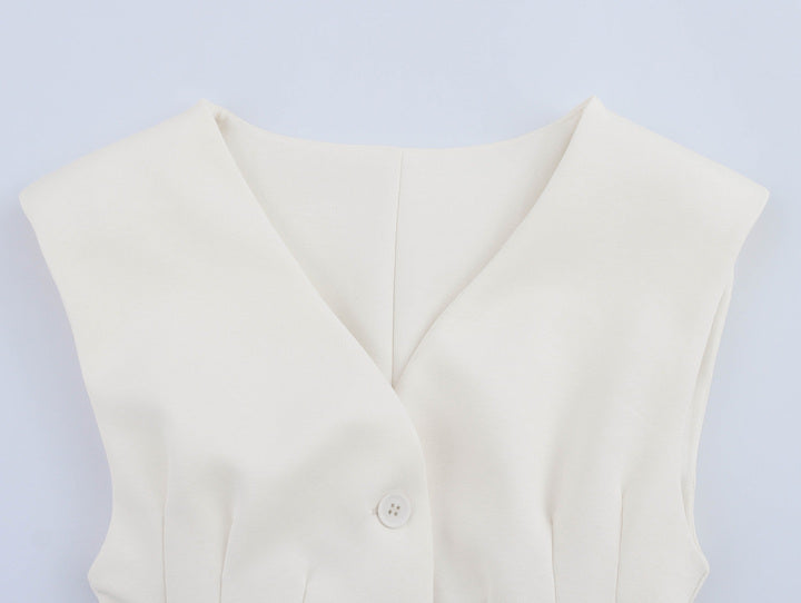 This beige sleeveless vest features a classic V-neck and button-up front, combining casual style with versatile fashion. Designed for women...